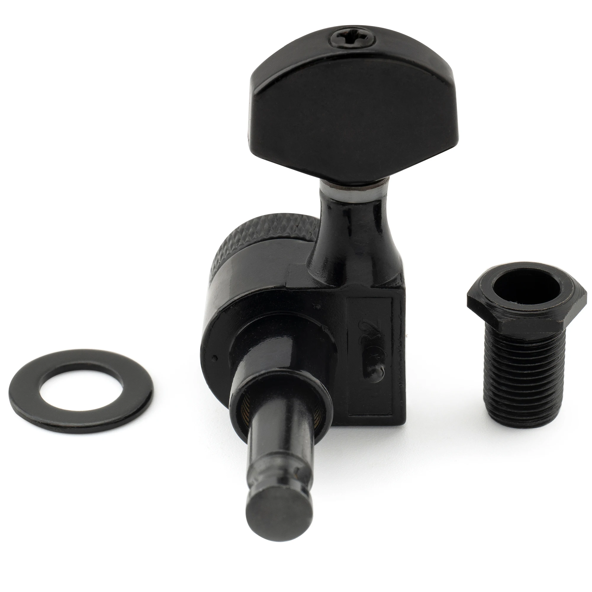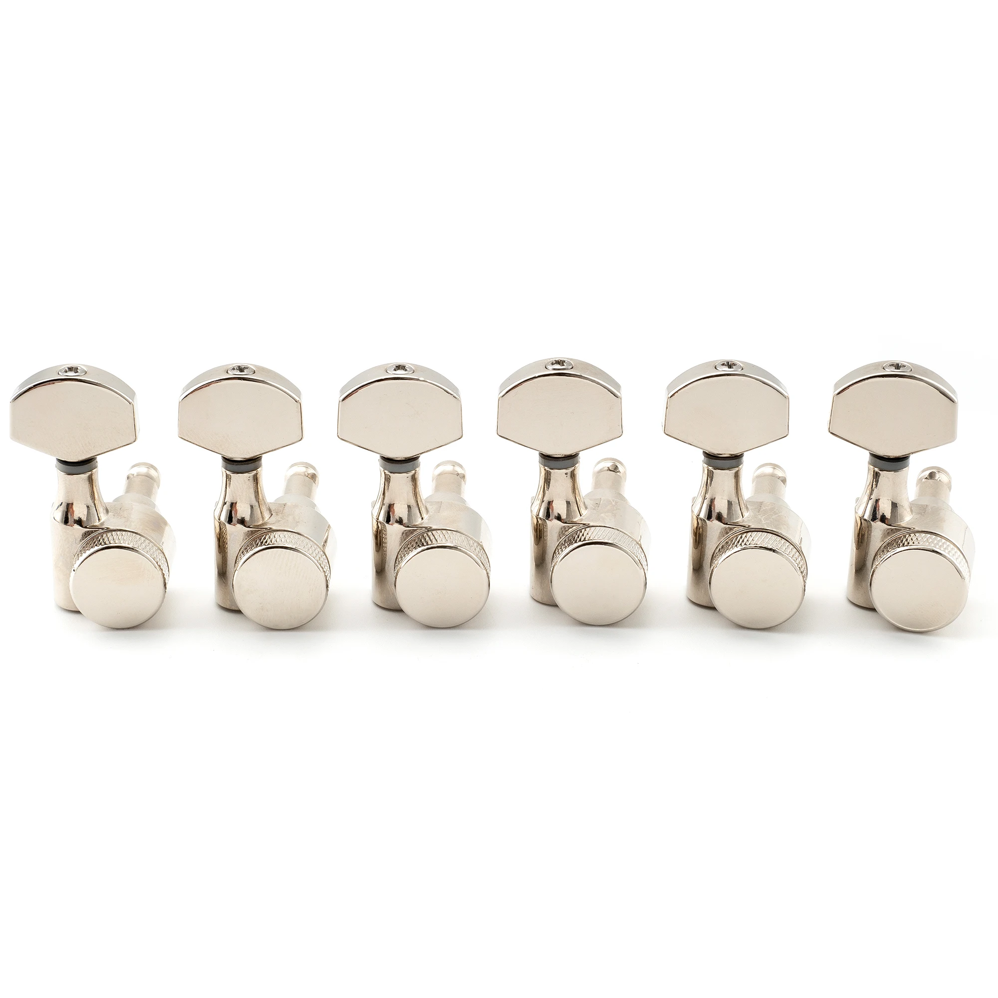 Enhance your electric guitar’s performance with this set of six 6-in-line locking machine heads, featuring a precise 15:1 gear ratio and 10mm peg hole compatibility for SQ Strat/Tele styles. Crafted from durable zinc alloy with a sleek electroplate finish available in black, chrome, gold, or nickel, these tuners incorporate a 1-pin locking mechanism for secure string retention and stability. Designed for smooth, accurate turning, they facilitate faster string changes without requiring screws for installation, thanks to their integrated 1-pin mounting system. Perfect for upgrading your instrument and ensuring reliable tuning, these high-quality tuners combine modern aesthetics with professional functionality.