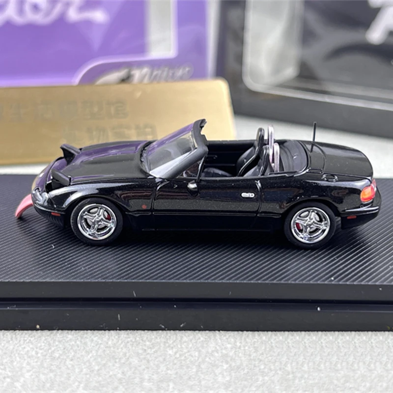 Imagine adding a meticulously crafted collectible to your collection—this is this highly detailed black Mazda MX5 Eunos Roadster NA RB diecast model. Designed in a sleek 1:64 scale, its alloy construction ensures durability while maintaining a lightweight, refined feel. The shiny black finish highlights the smooth, flowing lines and curvature that define the MX5’s sporty elegance. With realistic features such as rounded headlights, a minimalist grille, transparent windshield, and a convertible top revealing the interior with tiny black seats, this model truly captures the essence of the original. Silver multi-spoke wheels, detailed taillights, and a black display base enhance its visual appeal. Perfect for display, decoration, or gifting, this model invites you to relive the iconic design of the Mazda MX5.