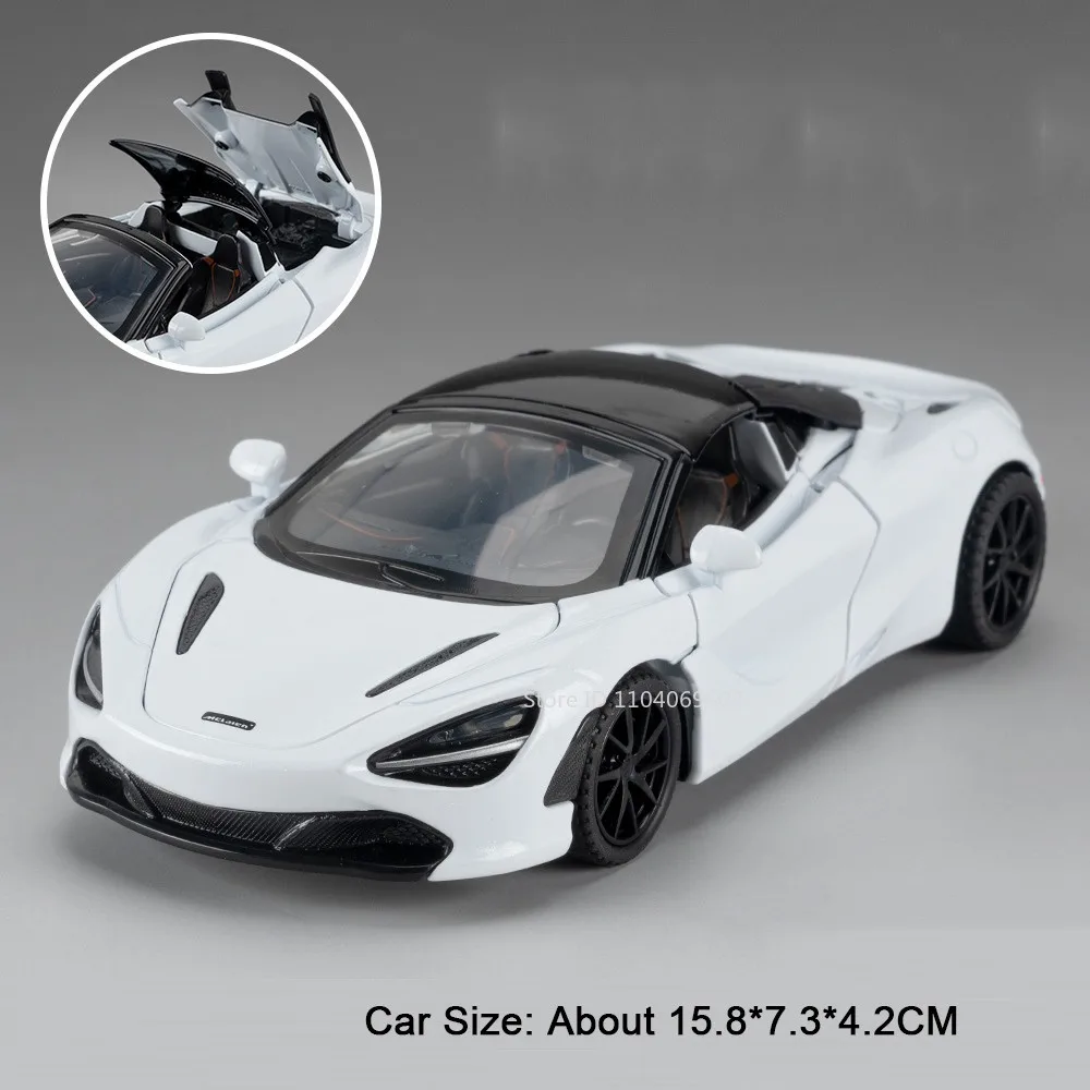 - Available in five vibrant colors: Black, White, Yellow, Orange, and Grey, to suit various preferences and collection styles, with dimensions approximately 15.8 x 7.3 x 4.2 cm for the 720S and 14.5 x 7.5 x 4 cm for the 765LT.