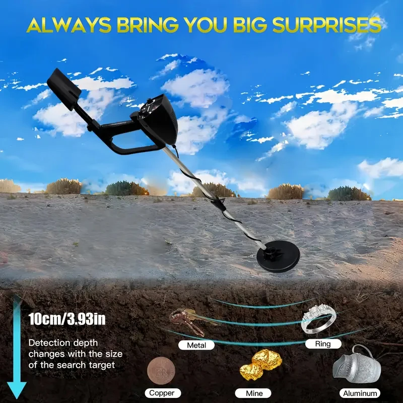 Discover the professional-grade underground metal detector in sleek black, featuring an adjustable detection range of 10-30 cm (3.94-11.81″) and a sensitivity minimum of 130 mm (5.12″). Operating at 5 kHz, it detects a wide variety of metals including iron, aluminum, gold, bronze, and silver, with all-metal and discrimination modes for precise identification. The device’s adjustable stem extends from 78 to 107 cm (30.71-42.12″) for comfort, while the backlit LCD, mechanical pointer, and audio alerts enhance ease of use. Constructed from durable ABS plastic and aluminum, this versatile tool is ideal for treasure hunting, archaeology, safety inspection, and more. Batteries not included.