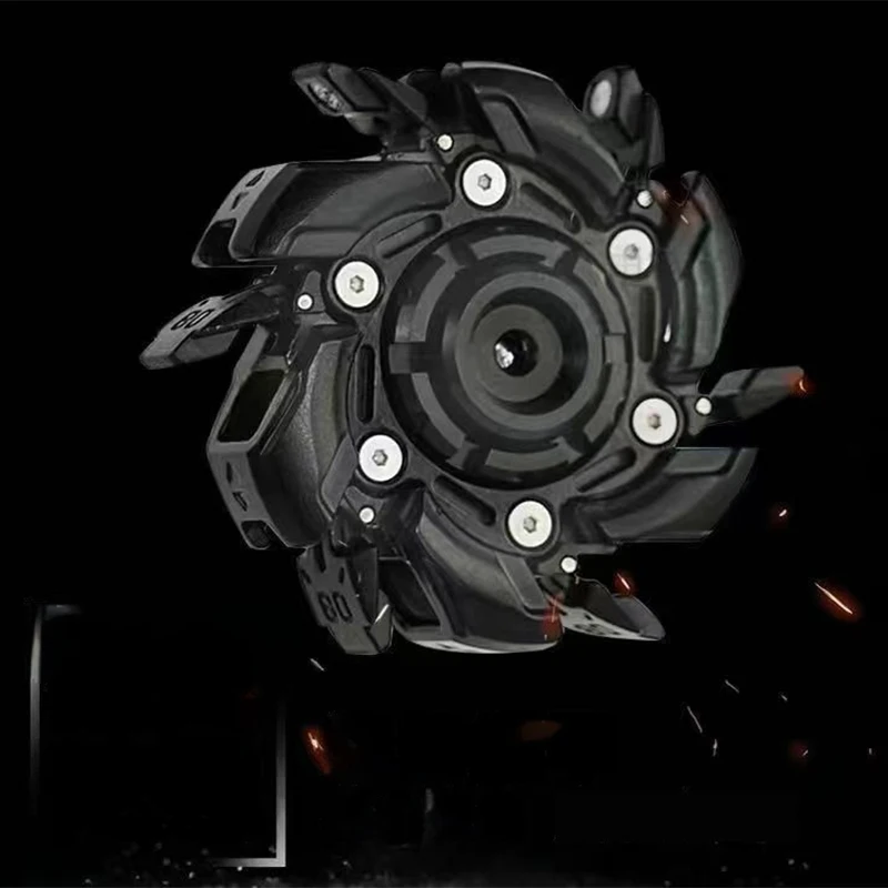 Imagine having this modern, metallic hand spinner in your palm, ready to ease tension and improve focus. Its sleek, black finish exudes a high-tech, sophisticated vibe that appeals to both adults and teens. Its intricate design features interconnected, curved blades arranged in a star or flower pattern, reflecting expert engineering and craftsmanship. The glossy, polished blades catch light beautifully, providing visual stimulation while offering a tactile experience. The central raised hub houses a smooth rotational bearing, ensuring effortless spinning. Secured with small silver screws, each component showcases a precise, industrial aesthetic. This high-quality, durable device is perfect for sensory engagement, decompression, and autism therapy—helping you focus or relax anytime you need it.