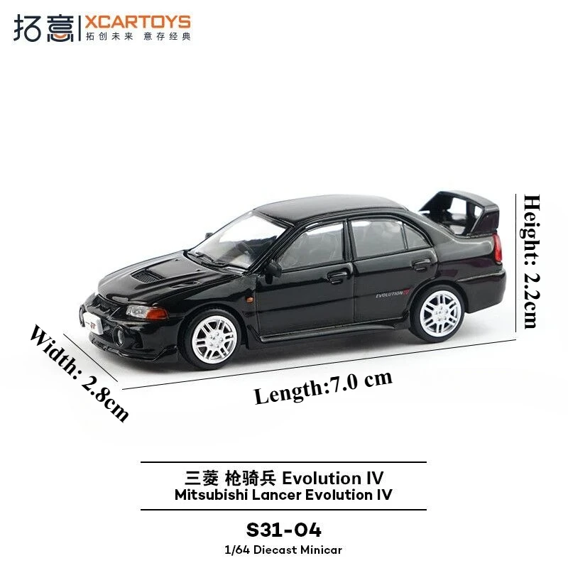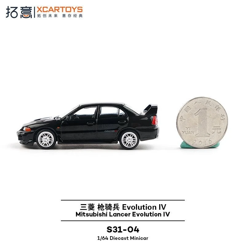 - Accurate 1:64 scale captures key features like the aerodynamic silhouette and sporty details of the Evolution IV.