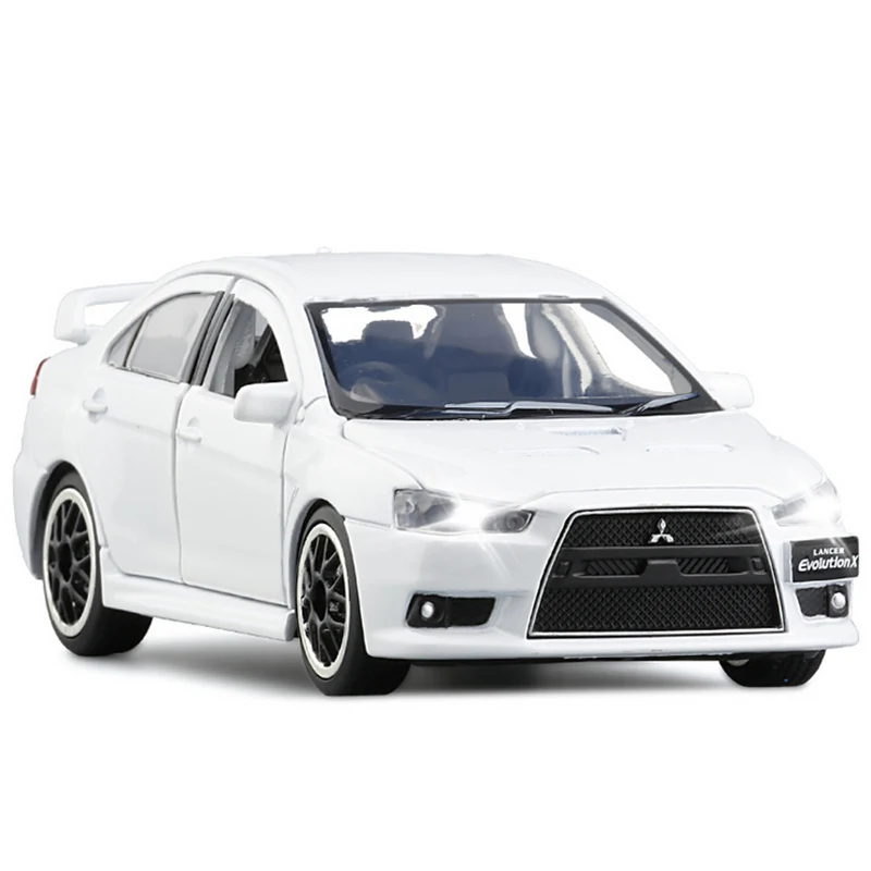Experience the thrill of high-performance racing with this 1:32 scale diecast alloy model of a Mitsubishi Lancer Evolution IX, crafted from durable metal and plastic. It features functional doors that open, pull-back movement, and realistic sound and light effects, enhancing its collectible appeal. Standing out in sleek black, racing blue, racing red, silvery, or white, this detailed model captures the aggressive aerodynamic design with sharp lines, a prominent rear spoiler, and transparent windows revealing a meticulous interior. Ideal for collectors and enthusiasts aged 7 and above, it combines high-quality finishing with dynamic features to bring your vehicle collection to life.