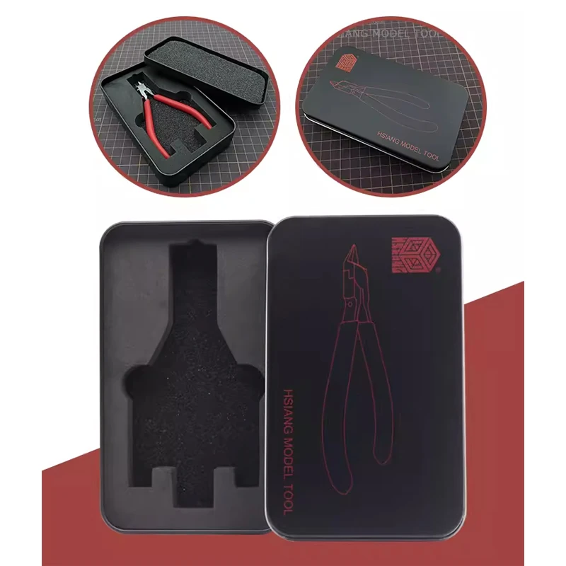 Keep your workspace tidy and your tools within reach with this modern, minimalist metal storage box designed specifically for model building enthusiasts. The compact, black metal case features rounded edges and a durable construction that ensures longevity. Inside, a custom foam insert secures a pair of precision pliers, crafted with a textured grip and slim tip for detailed work. The inside lid is decorated with a simple green line drawing of the pliers, adding a touch of style. Perfect for storing small tools or sewing accessories, this portable case combines functionality with understated elegance, making it an essential for hobbyists and professionals alike. Its clean design helps you focus on your projects while maintaining an organized workspace.