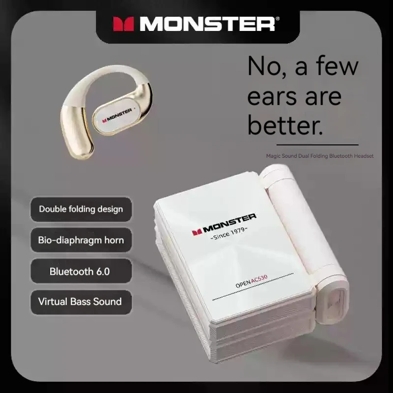 Experience professional-grade sound with this sleek BLACK MONSTER AC530 wireless earphones, designed for active lifestyles. These earbuds feature an ergonomic, modern aesthetic with glossy black housing made from durable ABS and accented with premium leather and metal for a high-tech look and feel. The flexible, curved ear hooks provide a secure fit during movement, making them ideal for sports or everyday use. Equipped with active noise-cancellation, these earphones deliver immersive audio by reducing external distractions. They include intuitive control buttons and a volume control interface, allowing seamless playback and call management via Bluetooth connectivity. Their foldable design enhances portability, ensuring you can enjoy quality sound anytime, anywhere. Whether you're commuting, working out, or relaxing, these earphones offer style, comfort, and performance.