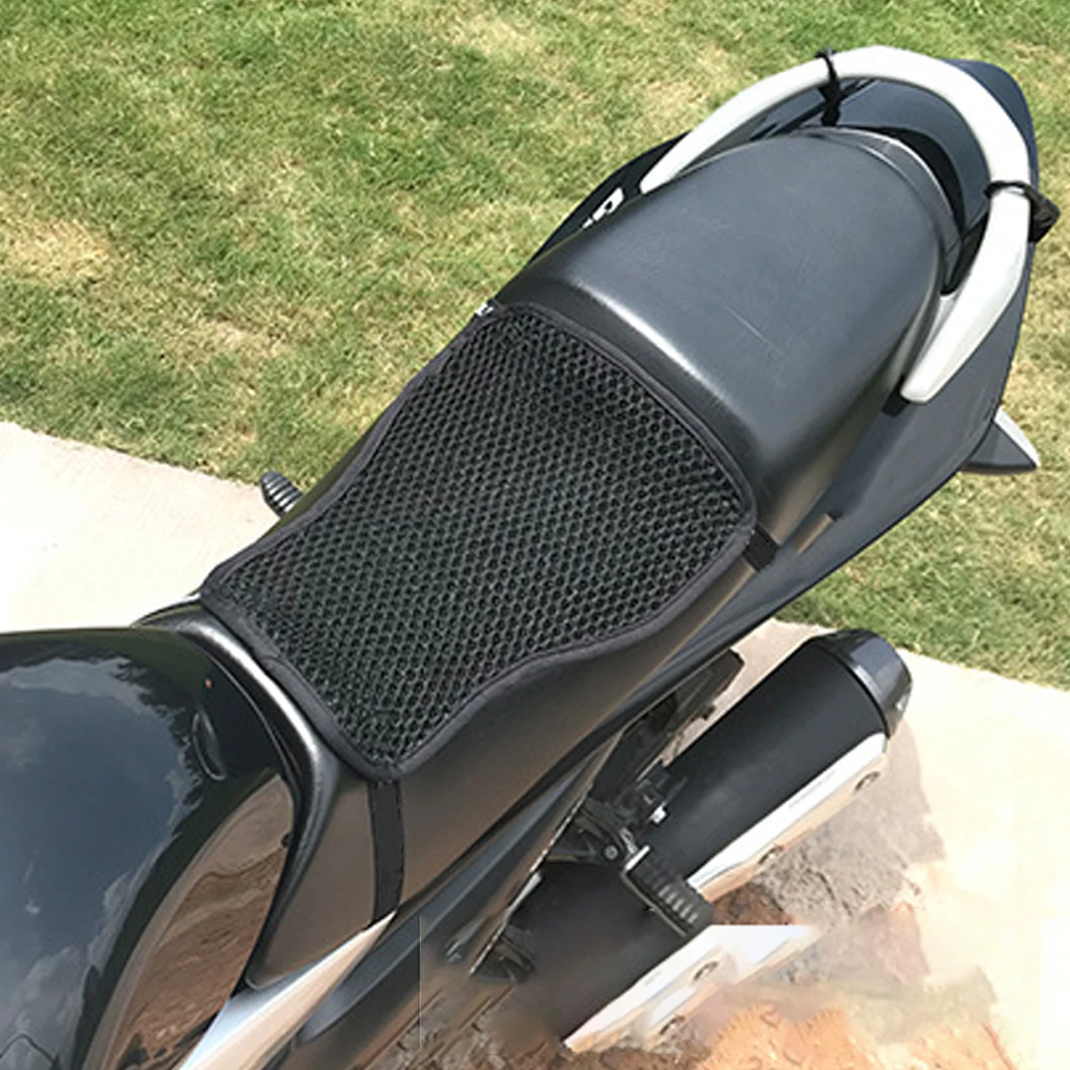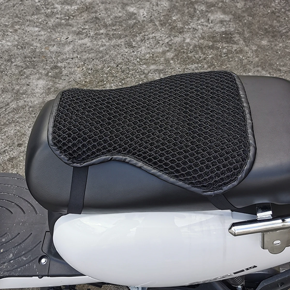 Experience unmatched comfort and stability with this expertly designed motorcycle seat cushion. Crafted from breathable polyester fiber with a 3D mesh fabric, it ensures excellent ventilation, quick-drying properties, and a lightweight feel. The textured honeycomb surface adds a modern aesthetic while promoting airflow. Its double-layer shock absorption system offers pressure relief and dampens vibrations during high-speed rides, making your journeys more pleasant. The reinforced, curved edges contour to your seat seamlessly, while the adjustable elastic straps allow quick, secure installation on most motorcycle seats. Its minimalistic yet practical design combines durability with ease of use, elevating your riding experience and ensuring long-lasting comfort. Feel confident every time you ride with this high-quality cushion suited for various motorcycle models.