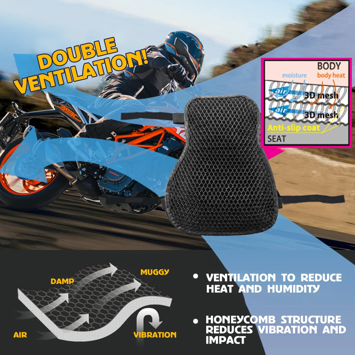 - Made from breathable polyester fiber and 3D mesh fabric, this cushion promotes airflow, reducing heat buildup and keeping you cool even on long rides.
