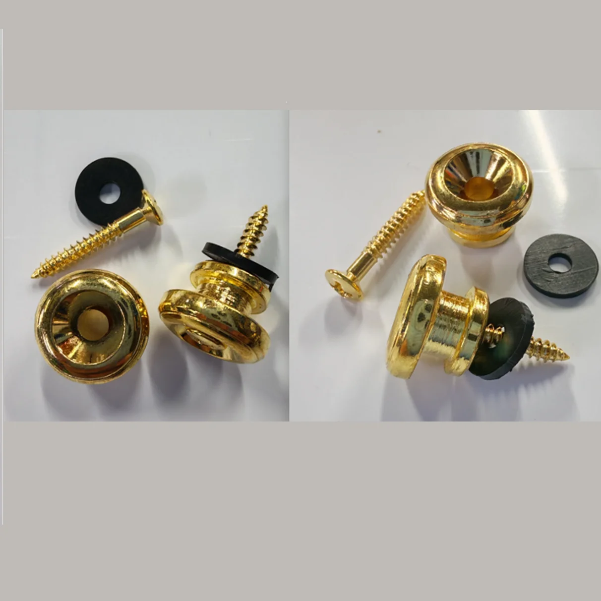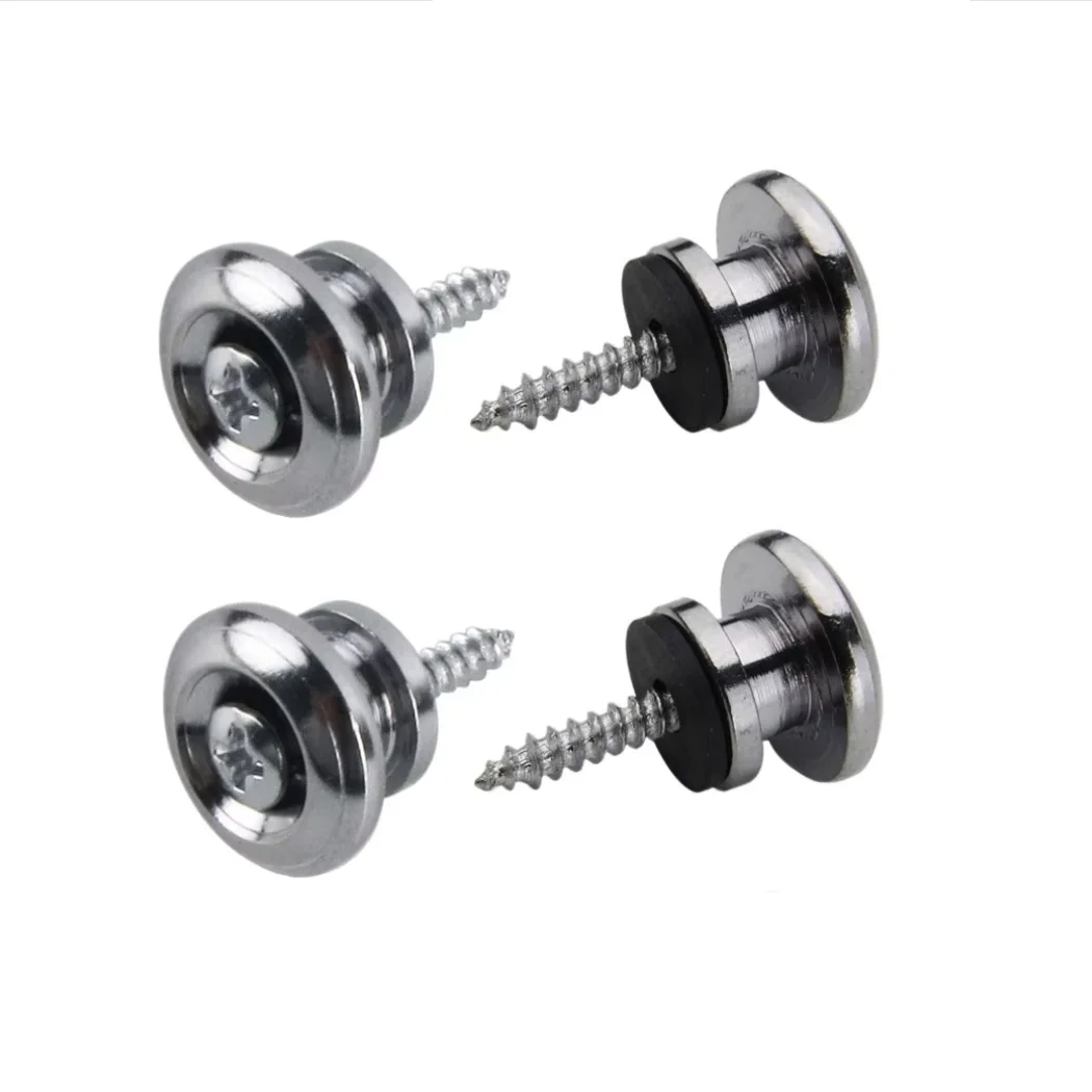 Imagine confidently playing your guitar without worry of strap detachment. This set of black mushroom head guitar strap locks offers a sleek, professional look with a glossy finish that complements various guitar styles. Designed with durability in mind, these metal locks feature a distinctive mushroom shape aiding in secure attachment and easy operation. The included screws and washers streamline installation, making setup quick even for beginners. Whether you play acoustic, electric, or bass guitar, these strap locks are perfect for ensuring your instrument remains firmly held during performances. Their minimalist yet rugged design blends practicality with visual appeal, allowing you to focus on your music while enjoying the confidence of a secure strap connection.