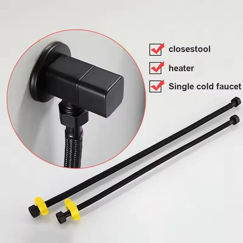 - The sleek black matte finish with a braided surface adds a modern, utilitarian aesthetic suitable for any plumbing environment.