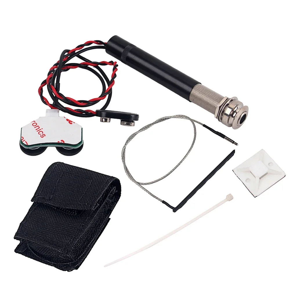 Enhance your acoustic guitar’s sound with this sleek black piezo pickup endpin jack base kit, featuring a prewired 3-band EQ for versatile tone control. Made from durable metal and plastic, it weighs around 300 grams and fits seamlessly into your instrument’s endpin. The kit includes one high-quality pickup, a sturdy mounting base, a storage bag, and a cable tie for secure wiring. Please note, it requires a 9-volt battery (not included) for operation. Its compact design ensures a discreet, professional fit, allowing you to amplify your performances with clarity and stability. Perfect for customizing your acoustic guitar’s sound and making stage performances effortless.