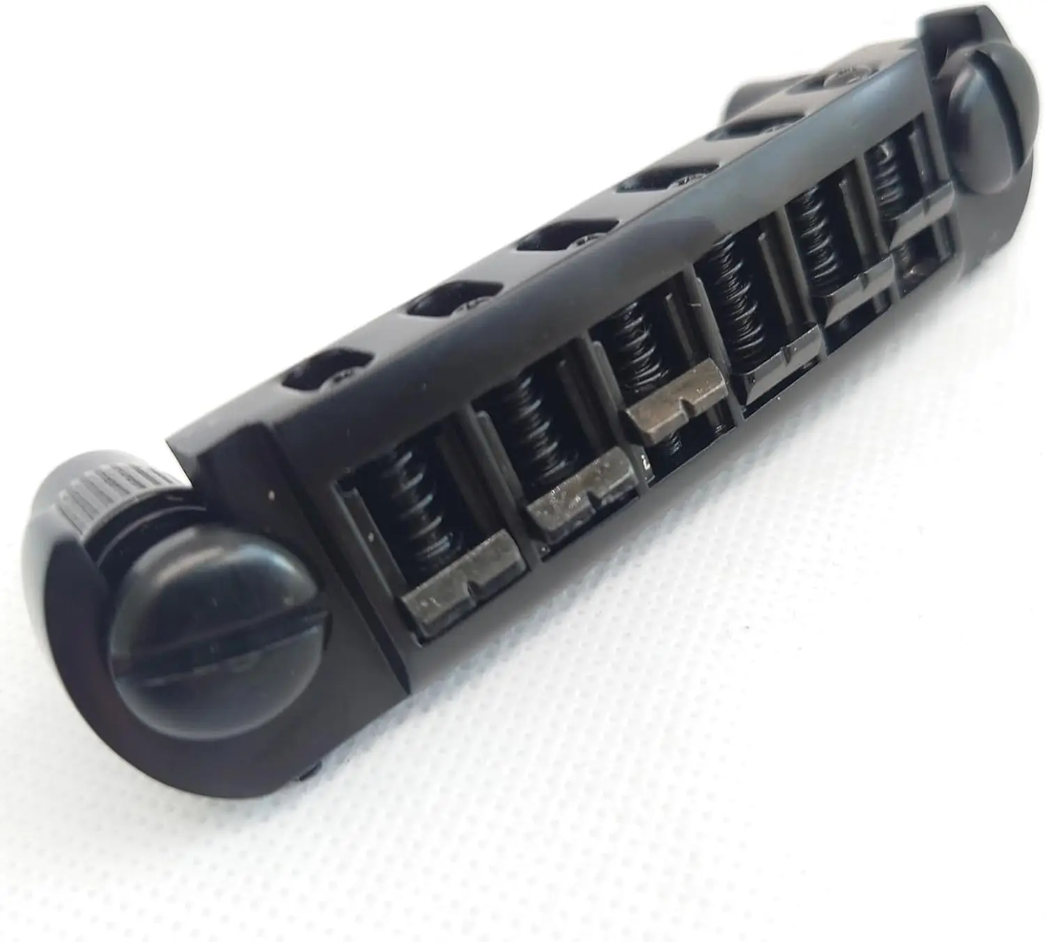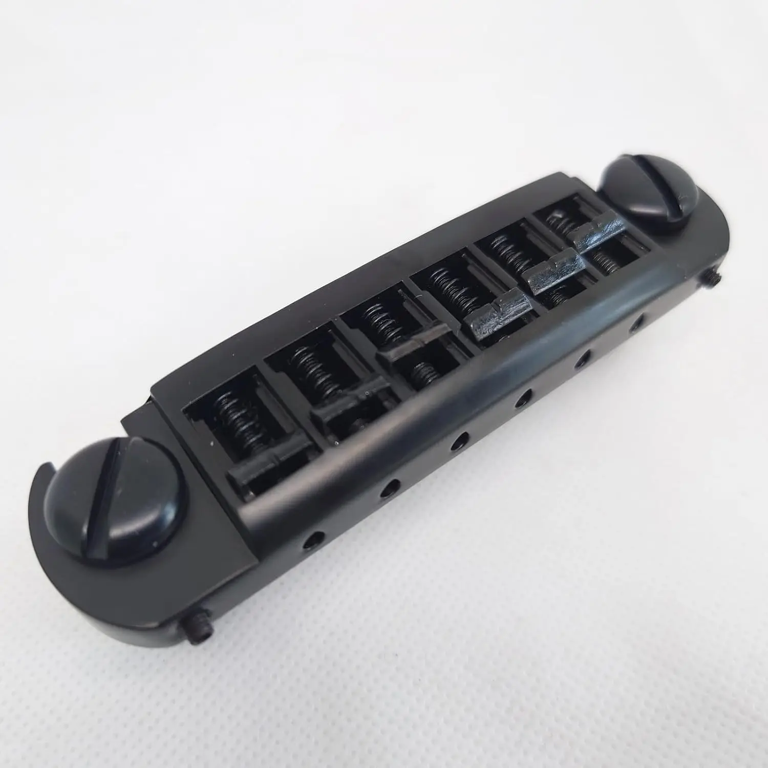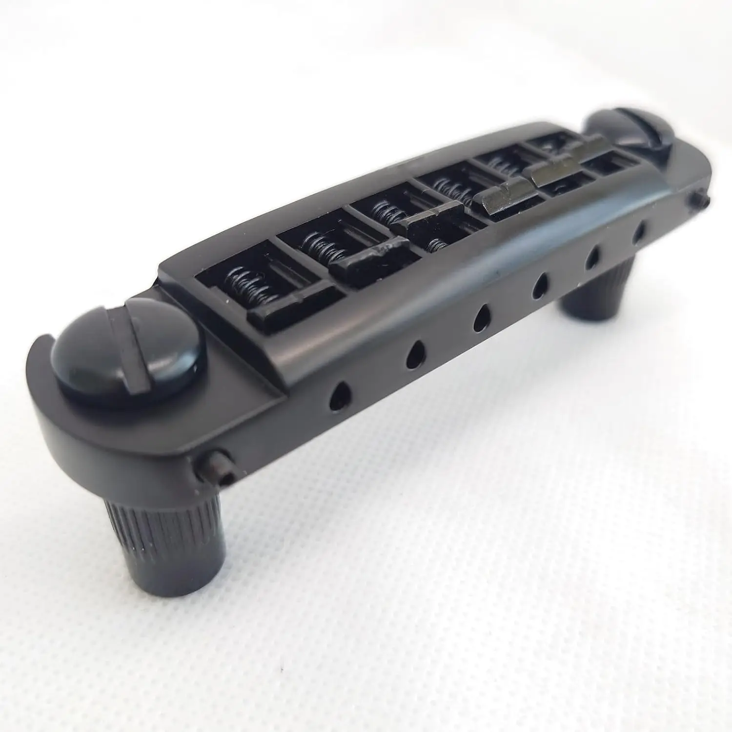 Imagine customizing your guitar with this stunning black Pigtail wraparound bridge, offering both aesthetic appeal and enhanced playability. Its polished black finish pairs effortlessly with any guitar, creating a modern, minimalist look that complements your instrument’s design. Crafted from durable high-quality metal, this bridge ensures excellent tone transfer and long-lasting performance. The adjustable saddles and screw mechanisms allow precise control over string spacing and intonation, helping you achieve the perfect setup for your playing style. Easy to install and compatible with most LP and SG models, this bridge transforms your guitar into a uniquely personalized instrument. Enjoy improved stability, tuning, and a sleek visual upgrade every time you pick it up.