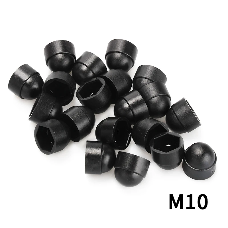 Imagine your bolts and nuts protected by sleek, black domes that not only shield them from weather and tampering but also elevate their appearance. This set of 20 plastic dome protection caps offers a seamless, modern solution for covering exposed hexagon bolts and nuts. Designed in four sizes—M6, M8, M10, and M12—they fit a variety of fasteners, providing an understated yet effective finishing touch. The smooth, matte black finish complements any industrial or outdoor setting, adding durability and style. Easy to fit and remove, these caps are perfect for improving the safety, longevity, and aesthetics of your project or machinery.