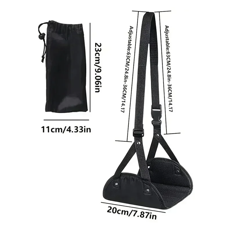 Transform your travel experience with this compact and resilient footrest hammock, perfect for long flights, commutes, or office breaks. Its simple design and adjustable features guarantee easy setup and reliable support, making it a must-have accessory for staying comfortable anywhere. Whether you’re on a plane, train, or at your desk, this product ensures your legs are properly supported, reducing fatigue and promoting relaxation. Invest in quality comfort today—your legs will thank you during every journey and workday. Don't miss out on elevating your travel and workspace experience with this practical, stylish accessory designed to fit seamlessly into your lifestyle.