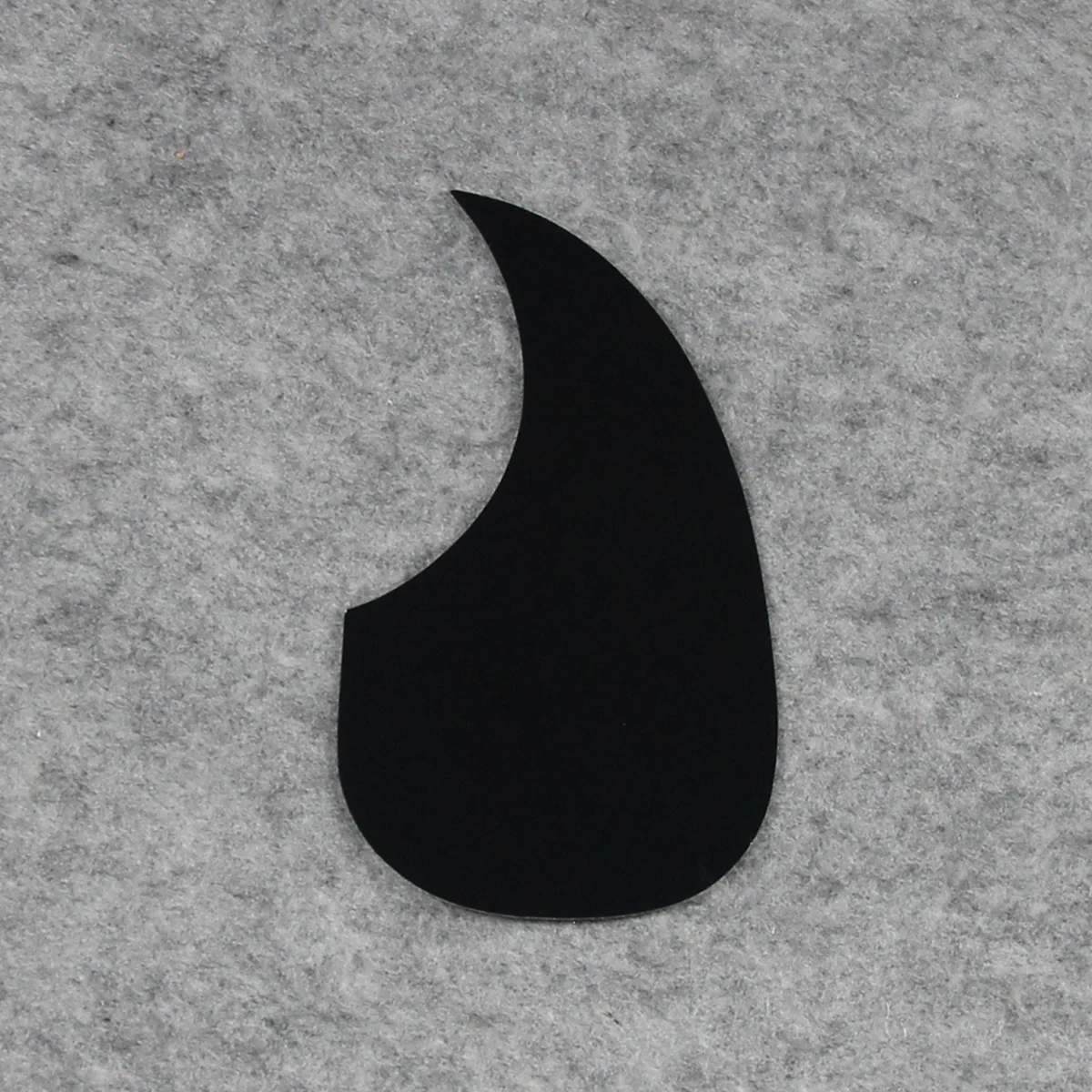 Transform the look and durability of your folk or classical acoustic guitar with this sleek black pickguard sticker. Crafted from high-quality PVC, it offers a protective layer that prevents scratches and surface wear while preserving your guitar's pure sound resonance. The minimalist, shape-specific design mimics a portion of a guitar pickguard, with a rounded bottom and a sharply pointed, inward-curving top, optimally fitting most folk and classical acoustic guitars. Its flat surface and smooth edges give a polished, professional appearance. Easy to install with a self-adhesive backing, simply peel and stick—no glue needed. This scratch plate ensures your instrument stays pristine during performances or practice sessions, maintaining its valued craftsmanship over time.