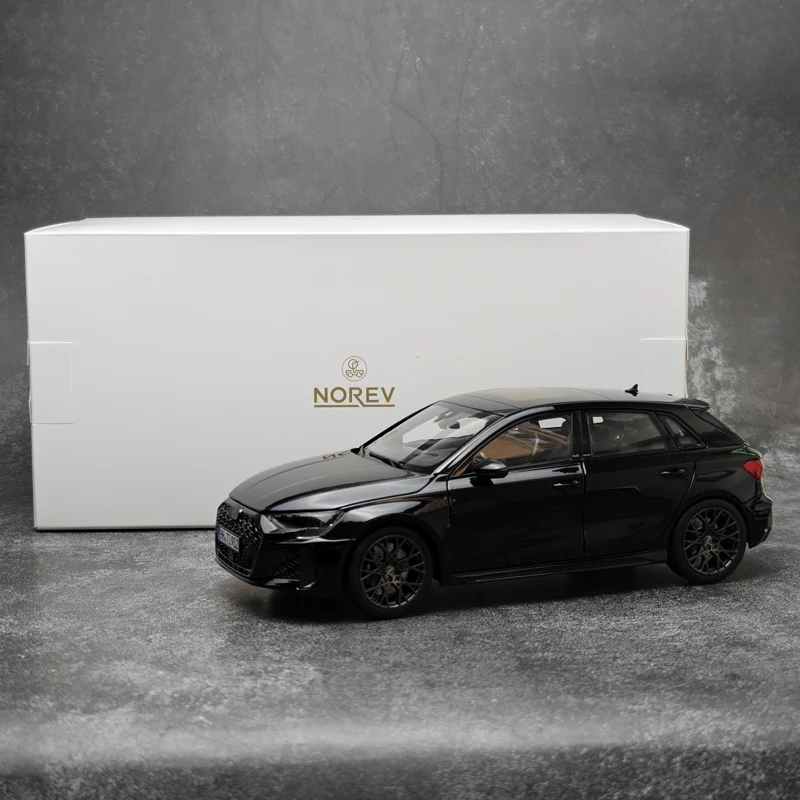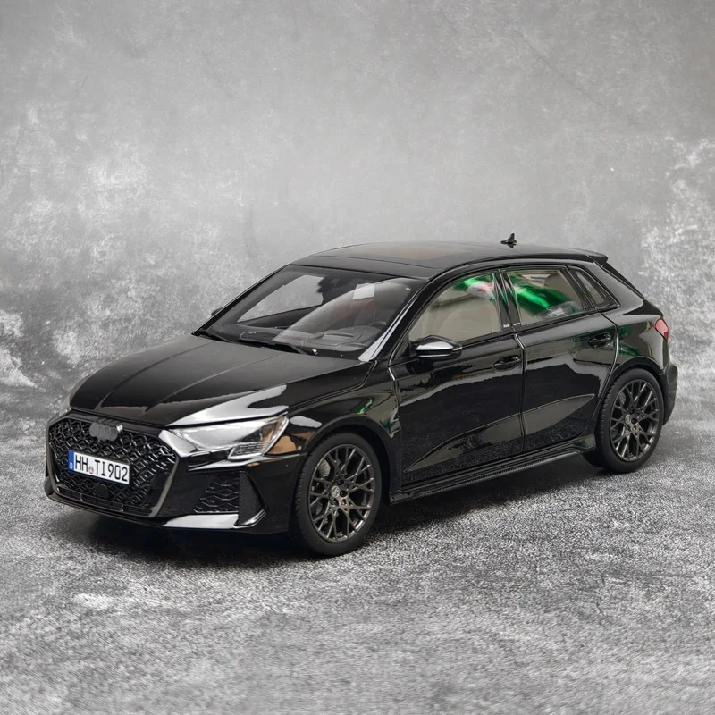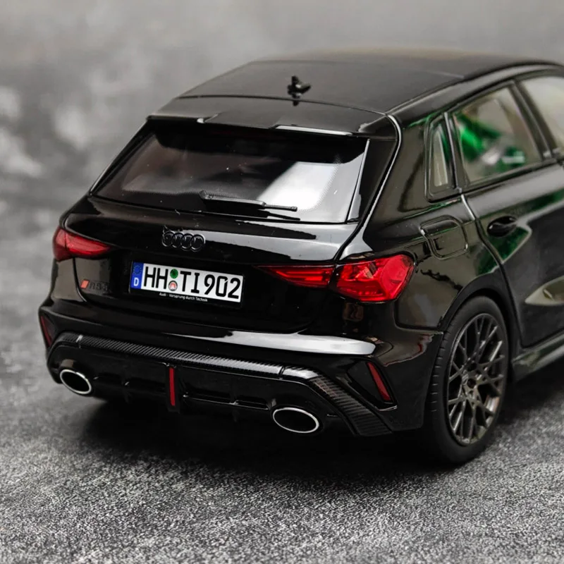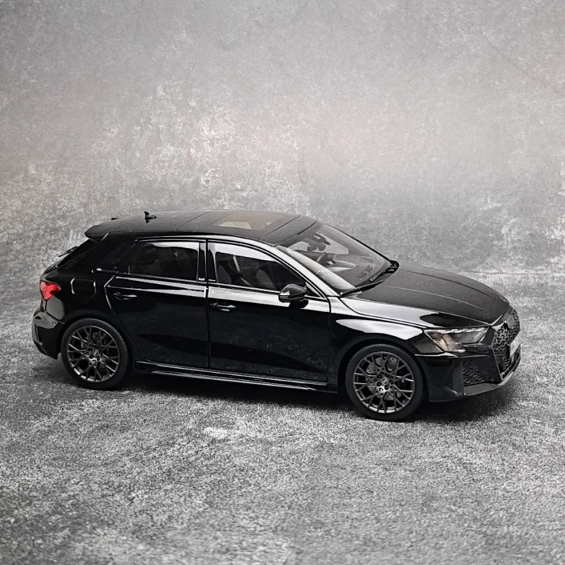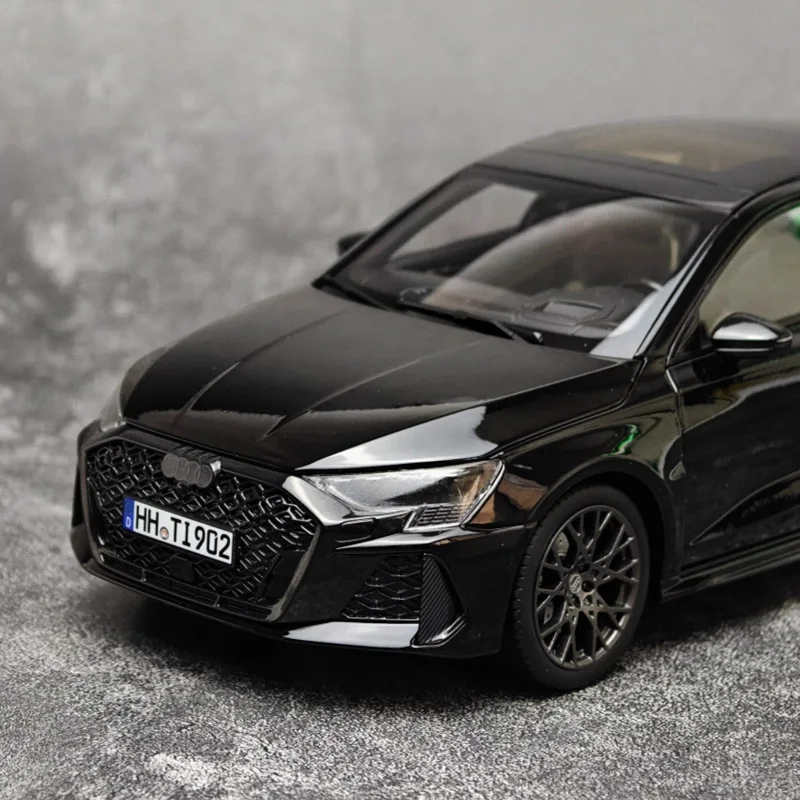- Precisely scaled at 1:18 with dimensions of 25cm in length, 11cm in width, and 8cm in height, offering an accurate miniature replica of the original RS3 2025.