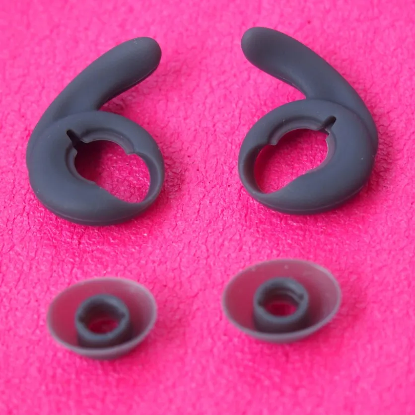 Experience a comfortable, secure fit with this set of four replacement silicone ear tips designed specifically for JBL REFLECT CONTOUR headphones. Crafted from smooth, matte black silicone, these ear tips combine sleek aesthetics with functional comfort. The larger semi-circular tips feature a hollow center, providing a snug seal and optimal sound isolation for active use. The smaller conical tips with rounded openings cater to different ear sizes or preferences, ensuring a personalized fit. Perfect for athletes and music lovers alike, these replacement tips enhance your listening experience while maintaining the sleek, modern look of your JBL headphones. Easy to install, they help you enjoy uninterrupted, high-quality sound during your workouts or daily routines.