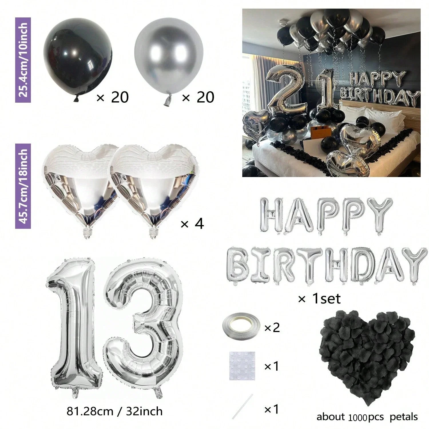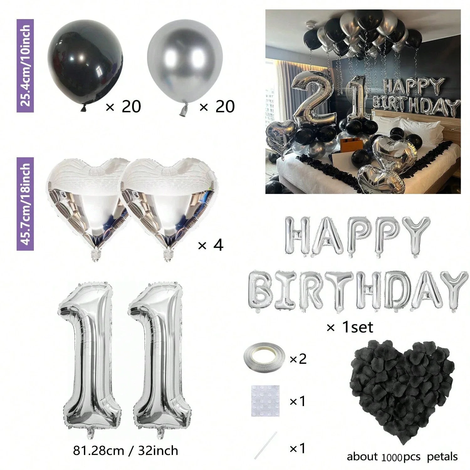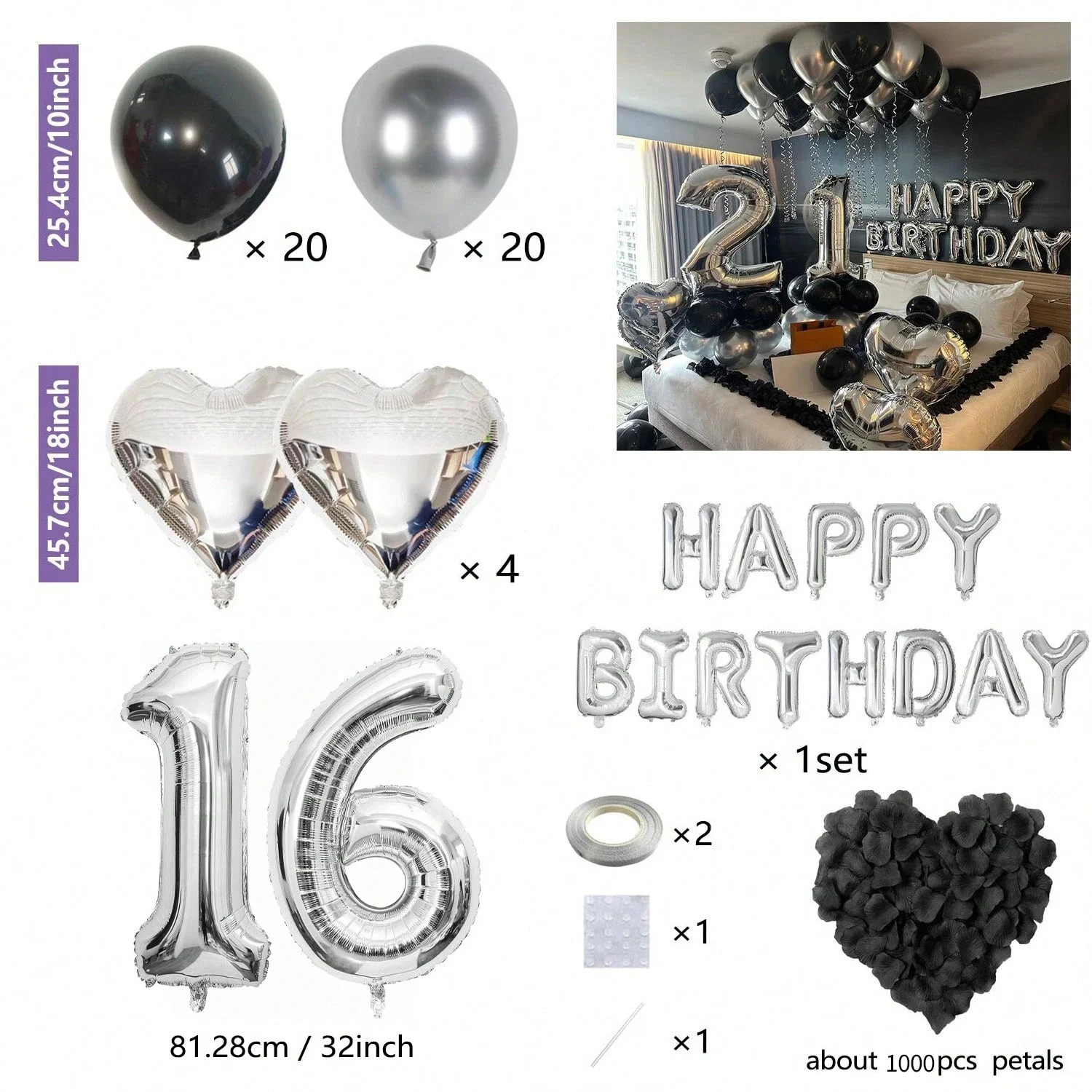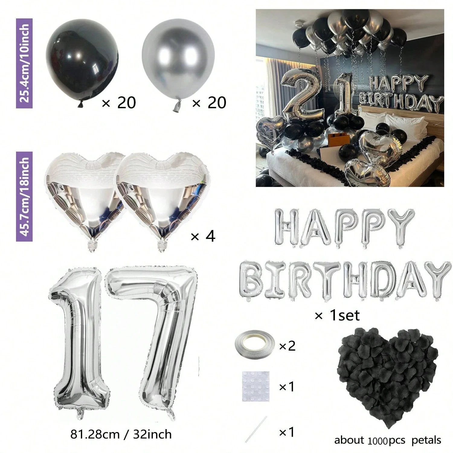 Create a sophisticated celebration ambiance with this set of 1,050 round latex balloons in glossy black and silver shades, all with a 10-inch diameter. Included is a striking silver “Happy Birthday” banner, perfect for elevating birthdays, children’s parties, and anniversaries. The balloons feature a modern, reflective finish that catches the light, adding an elegant touch to any event. Made from durable latex, these balloons are suitable for both kids and adults, providing ample decoration options for a chic and festive atmosphere. Easy to set up, this comprehensive set guarantees a memorable celebration with a polished, upscale aesthetic.