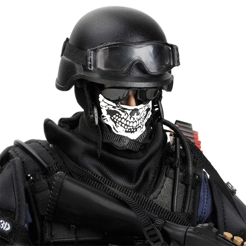Discover the intense, edgy look of this black skull mask designed specifically for 12-inch action figures. Crafted in realistic detail, this 1/6 scale model transforms your collectible into a tactical soldier with a fierce, rebellious appearance. The textured black flannel material provides a soft yet durable finish, ensuring an authentic military-inspired look. The bold skull graphic on a separate face covering adds striking visual contrast, making your figure stand out. Perfect for collectors and enthusiasts alike, this accessory enhances your display with a gritty, tactical vibe. Its versatile design makes it an ideal gift or addition to any military-themed collection, bringing your 1/6 scale action figures to life with style and attitude.
