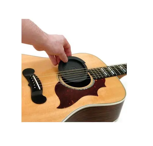Imagine playing your acoustic guitar at higher volumes without worrying about annoying feedback or howling sounds. This sleek, black feedback suppressor cover is designed to fit securely into your guitar’s 4-inch soundhole, effectively reducing feedback while maintaining your instrument's pristine tone. Constructed from durable plastic with a smooth matte finish, it offers a modern and minimalist look. The tapered design ensures a snug fit across various guitar types, enhancing your stage performance or practice sessions. Its simple installation and removal make it incredibly user-friendly, allowing you to switch quickly between settings. Experience richer sound quality and increased loudness without modifications or damage to your instrument, making your playing more dynamic and confident.