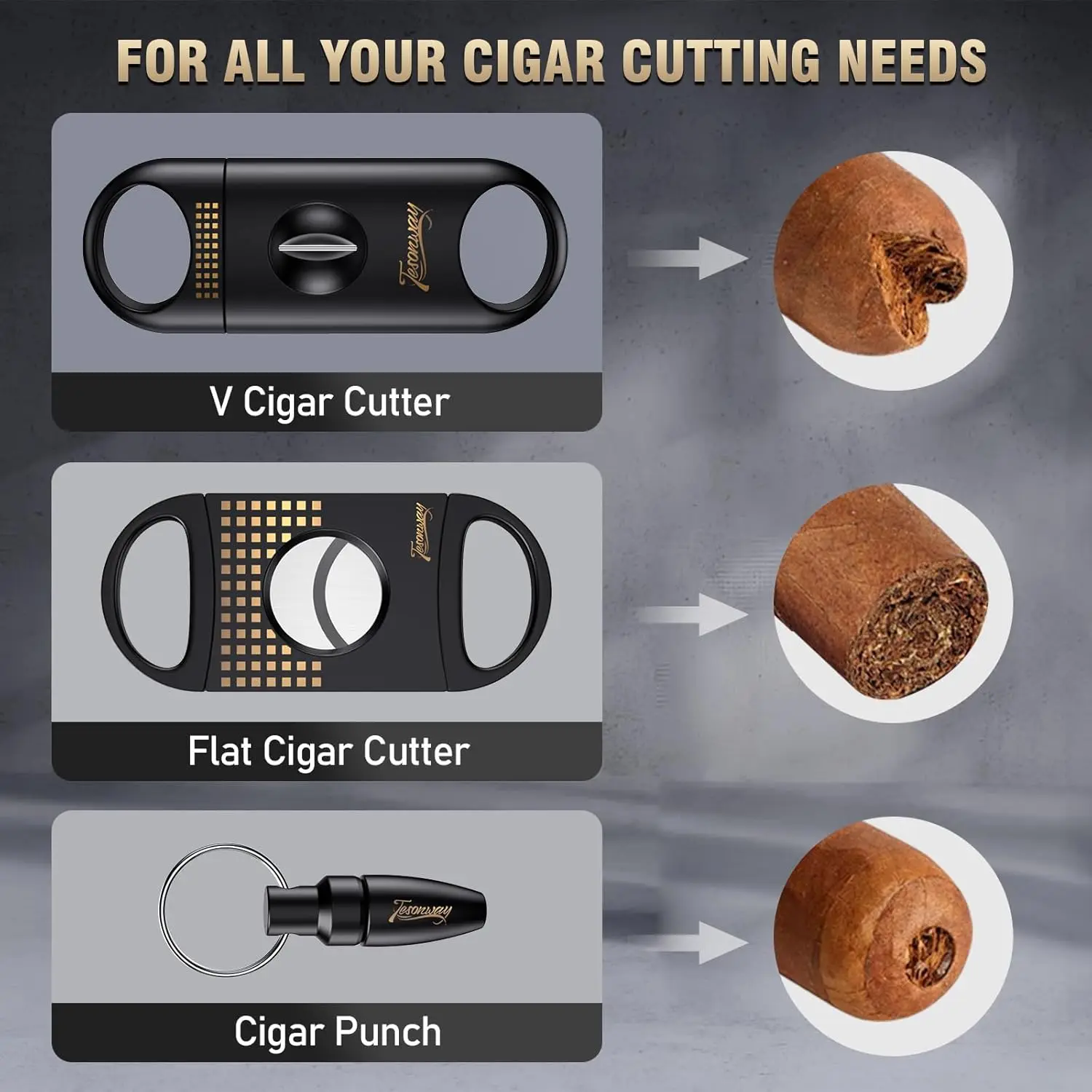 Imagine yourself enjoying a smooth cigar with this stylish, functional set enhancing every moment. Whether relaxing at home or entertaining outdoors, this set adds convenience and class to your ritual. Its high-quality construction and contemporary design make it a perfect gift for cigar lovers or your personal collection. With durable materials and precise blades, you'll enjoy many satisfying moments of cigar enjoyment. Don't wait—bring this refined accessory set into your routine and elevate your smoking experience to a new level of sophistication and ease.