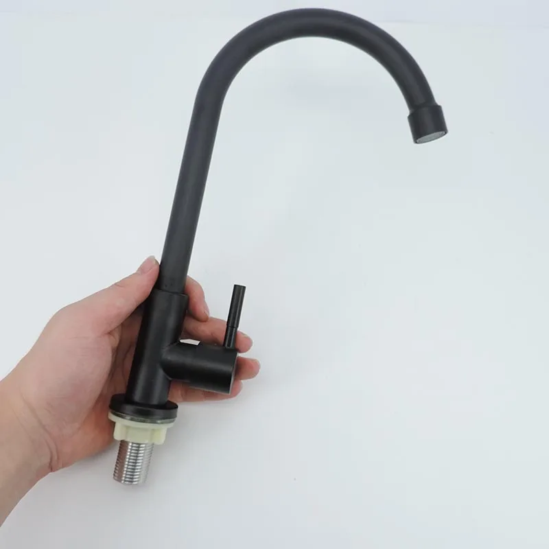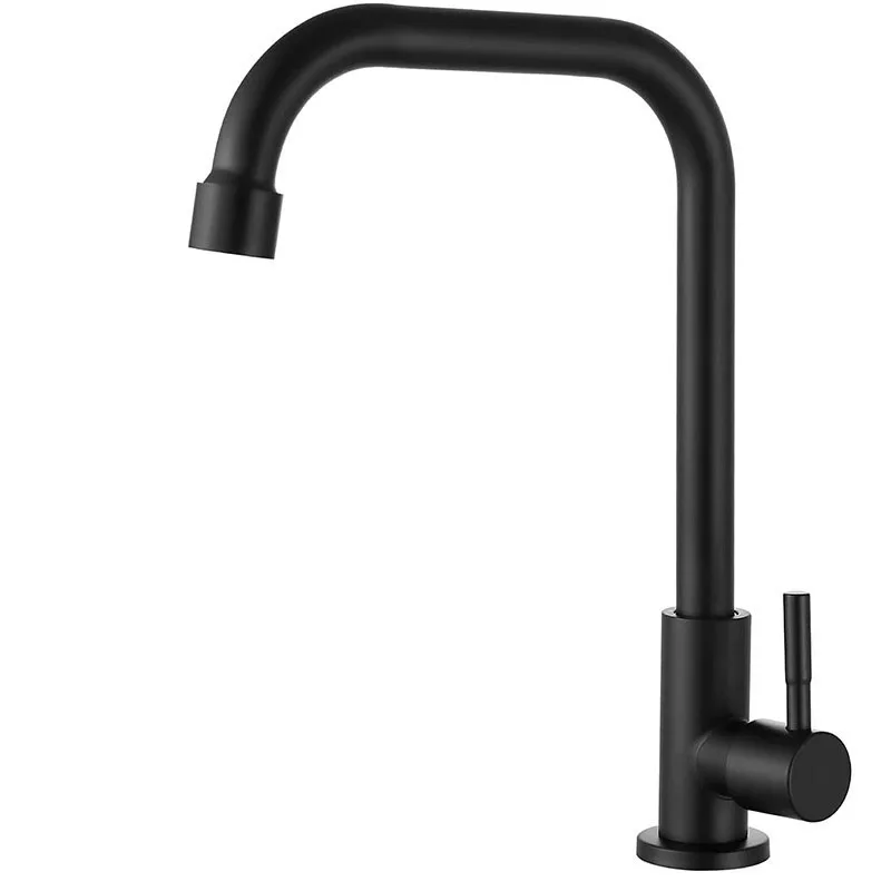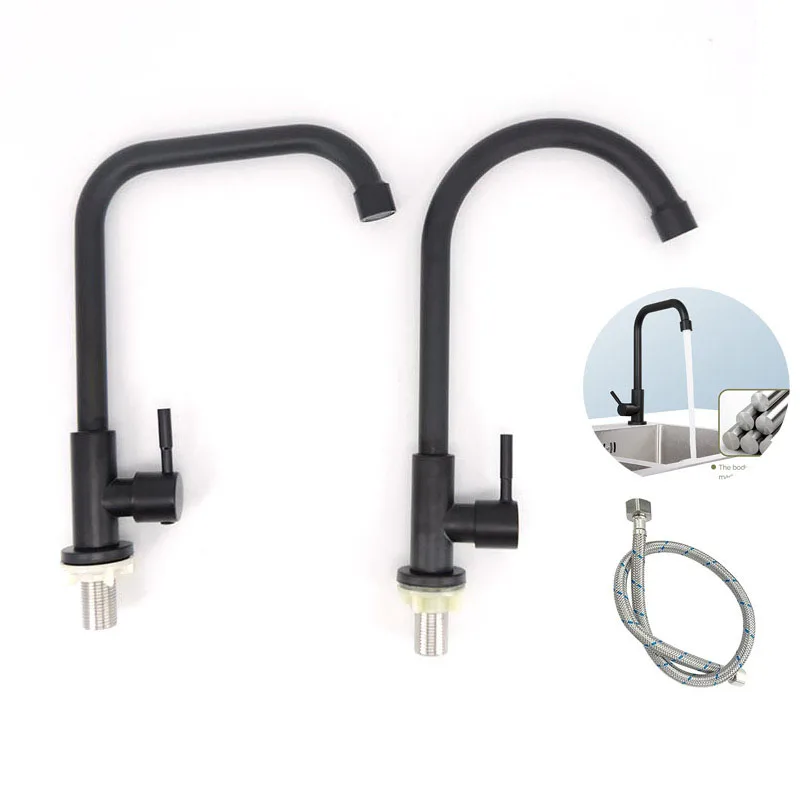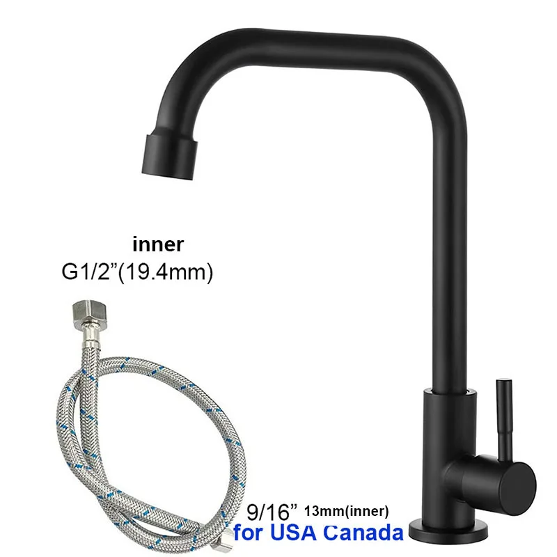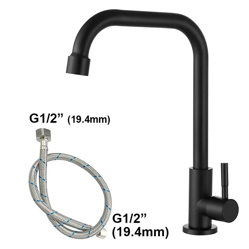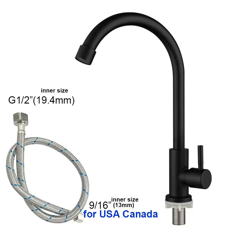 Enhance your kitchen with this sleek black stainless steel faucet, crafted from durable 304 stainless steel that is lead-free, corrosion-resistant, and rustproof for long-lasting use. Featuring a tall, curved, rotatable spout, single-handle operation, and a single-hole deck-mounted design, it offers effortless water control and a streamlined aesthetic. The faucet includes an energy-saving bubbler with a soft, gentle flow to conserve water while providing a comfortable user experience. Compatible with G1/2 or 9/16 connections, this stylish and practical faucet is perfect for modern kitchens, combining durability, health safety, and contemporary design.