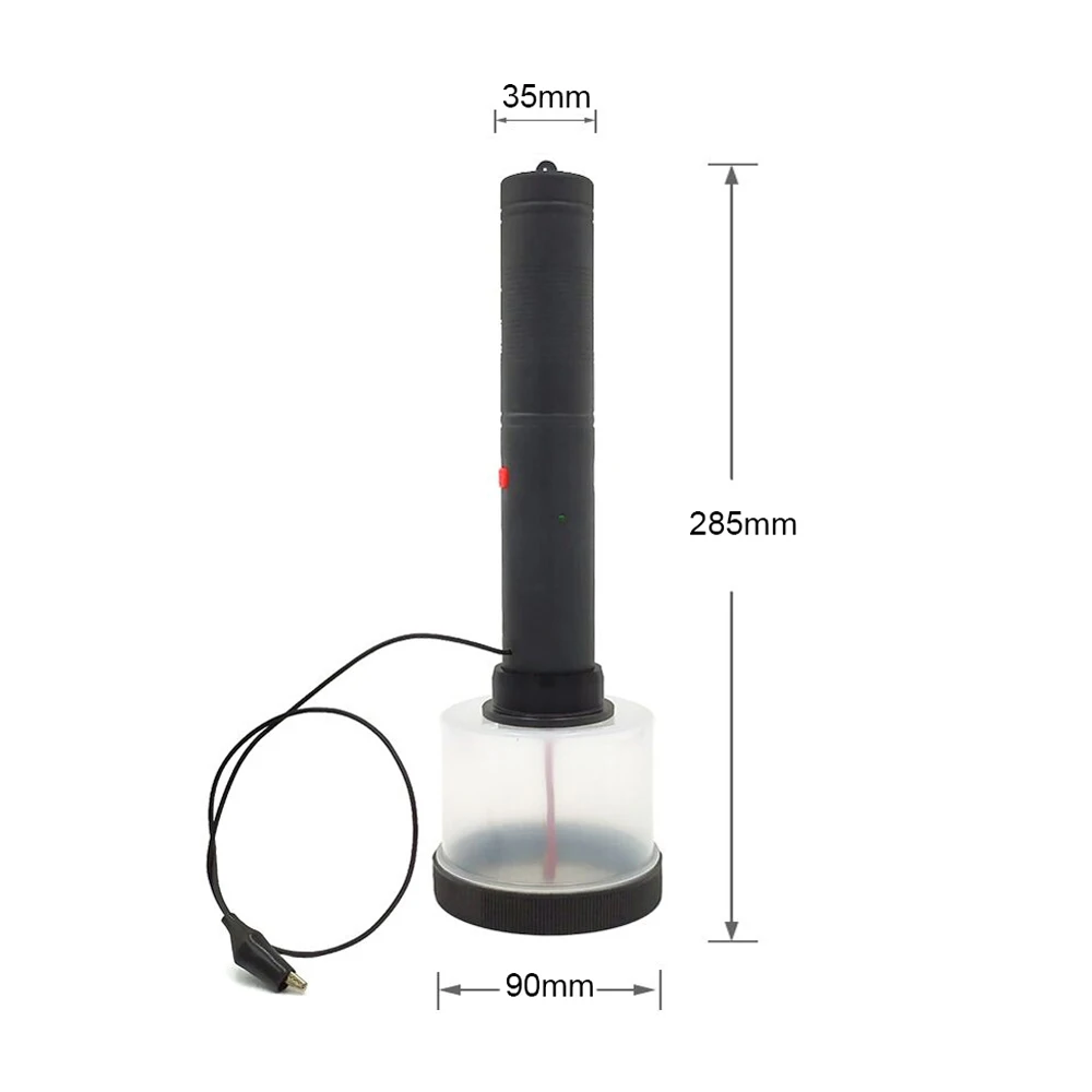 - Technical specifications include: size 285 x 90 x 90mm, handle diameter 30mm, weight approximately 300 grams, with low power dissipation circuitry.