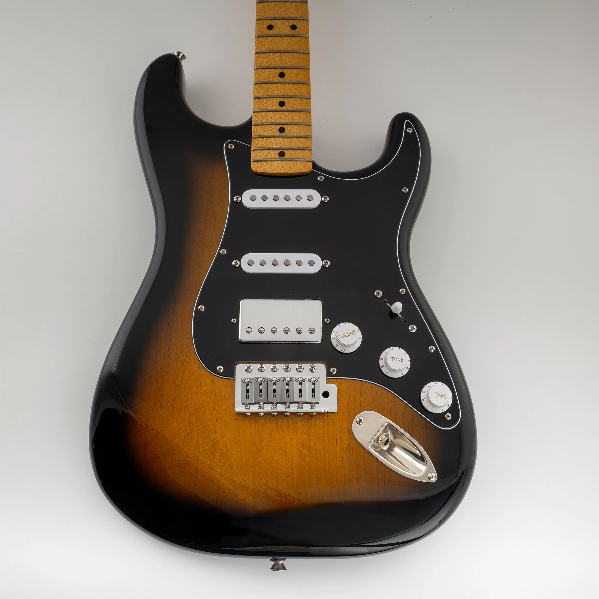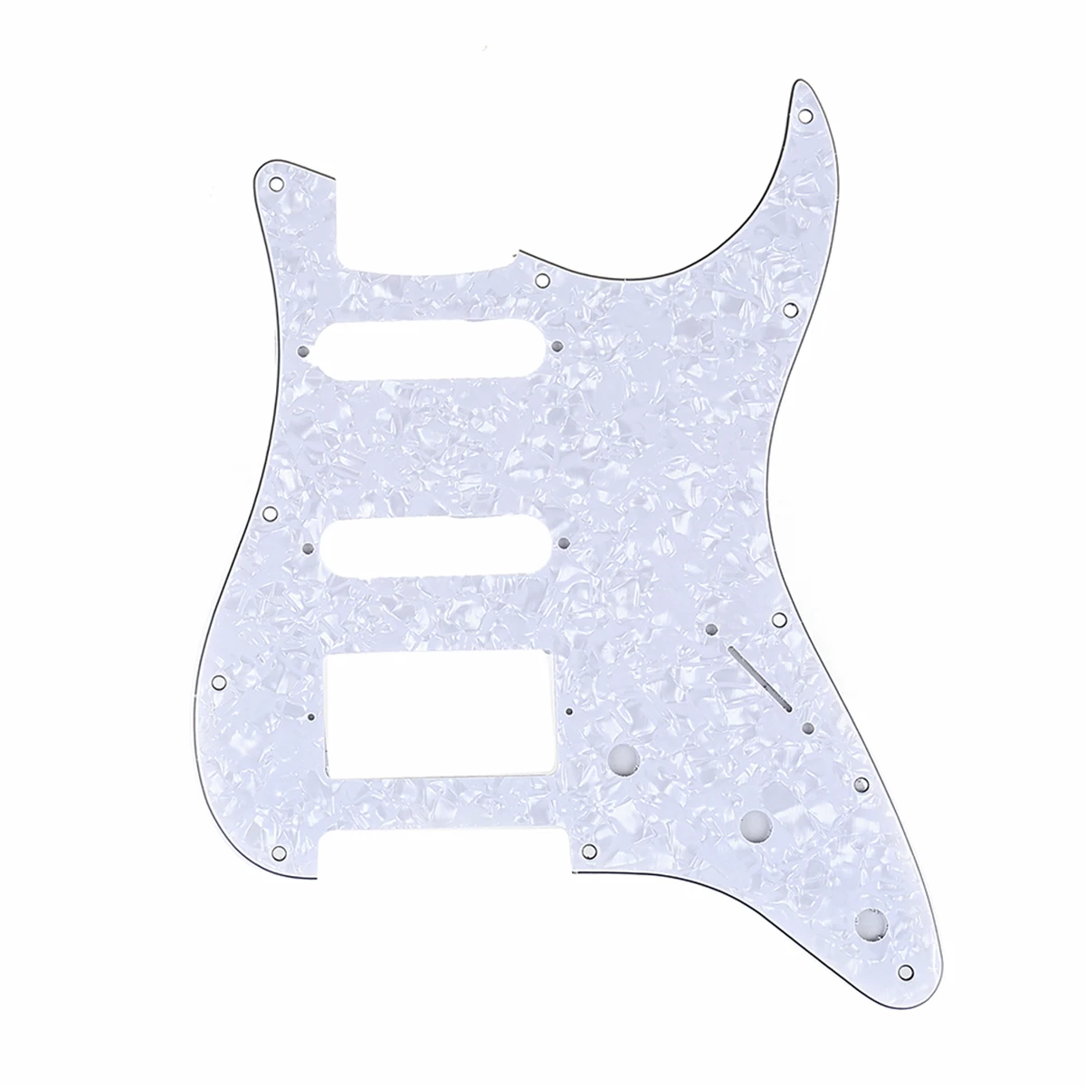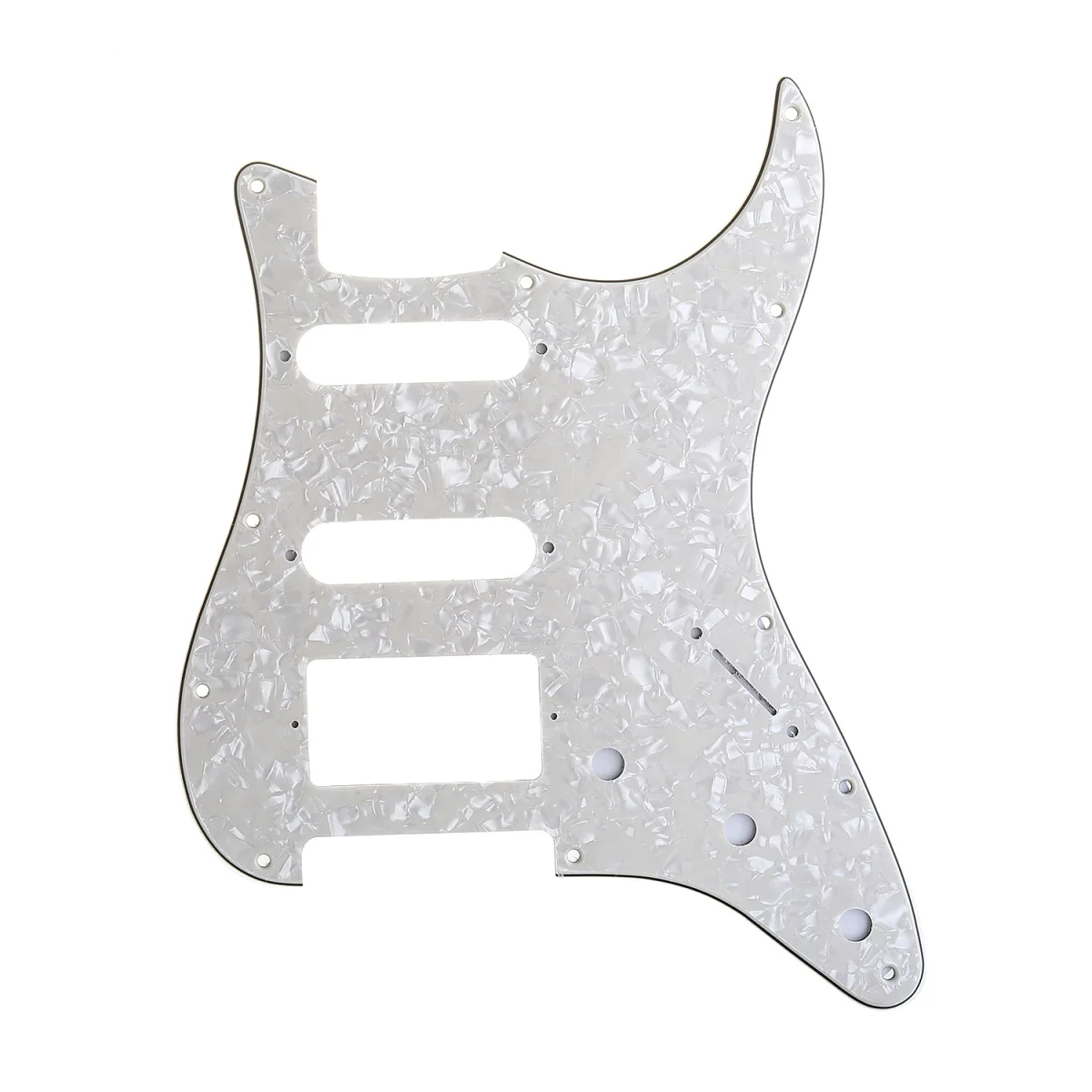Enhance your Stratocaster with this high-quality Musiclily Pro 11-Hole Modern Style ST HSS Pickguard, crafted from durable plastic with a thickness of 2.0-2.2mm. Designed to fit most American, American Standard, Deluxe, Hot Rod, and Classic (’70s-style) models from 1986 onward, it features 11 mounting screw holes and a 2-screw humbucking pickup mount. The sleek, glossy pickguard is available in a variety of colors including 3Ply Cream, White Pearl, Mint Green, Ivory, and Tortoise Shell, offering a perfect aesthetic match for your guitar. It also includes a large back shielding area with double-layer protective films for added protection and sound isolation.