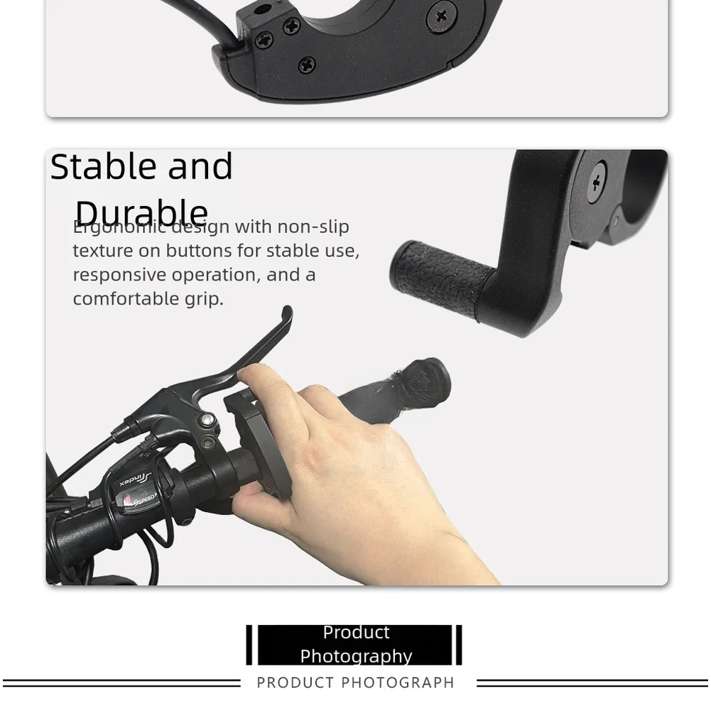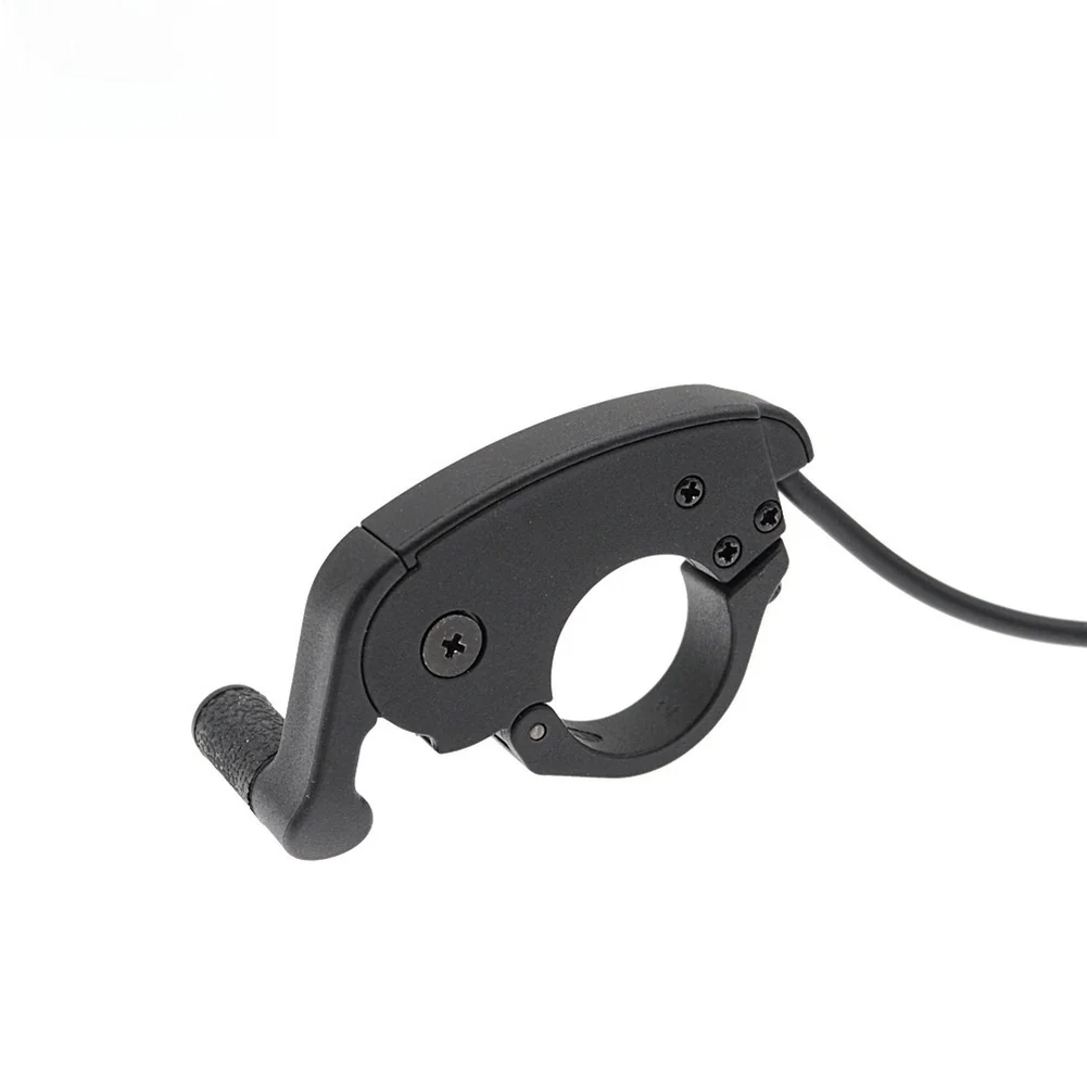 Enhance your electric vehicle experience with this black thumb throttle speed controller, featuring a sleek, ergonomic forward-push design for precise speed regulation. Crafted from durable wear-resistant ABS with an anti-slip textured surface, it offers long-lasting performance and a secure grip. Compatible with most electric bicycles and scooters with 22mm handlebars, it measures 6.8 cm in length, 2.8 cm in width, and 4 cm in height for a compact fit. The three-wire connection (positive, negative, and signal) allows for quick, straightforward installation without handlebar disassembly, ensuring reliable and smooth control at your fingertips.