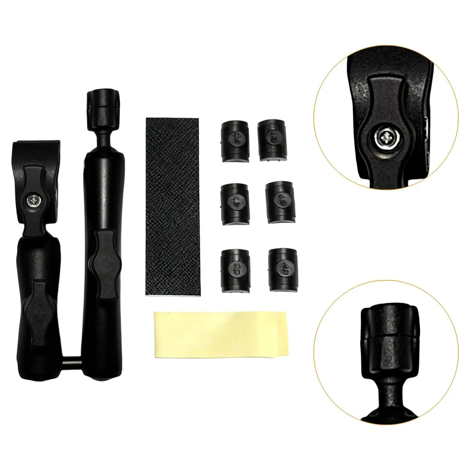 - The support arms are ergonomically rounded with textured grips for easy adjustments and firm clamping on various folding bike frames and wheels.