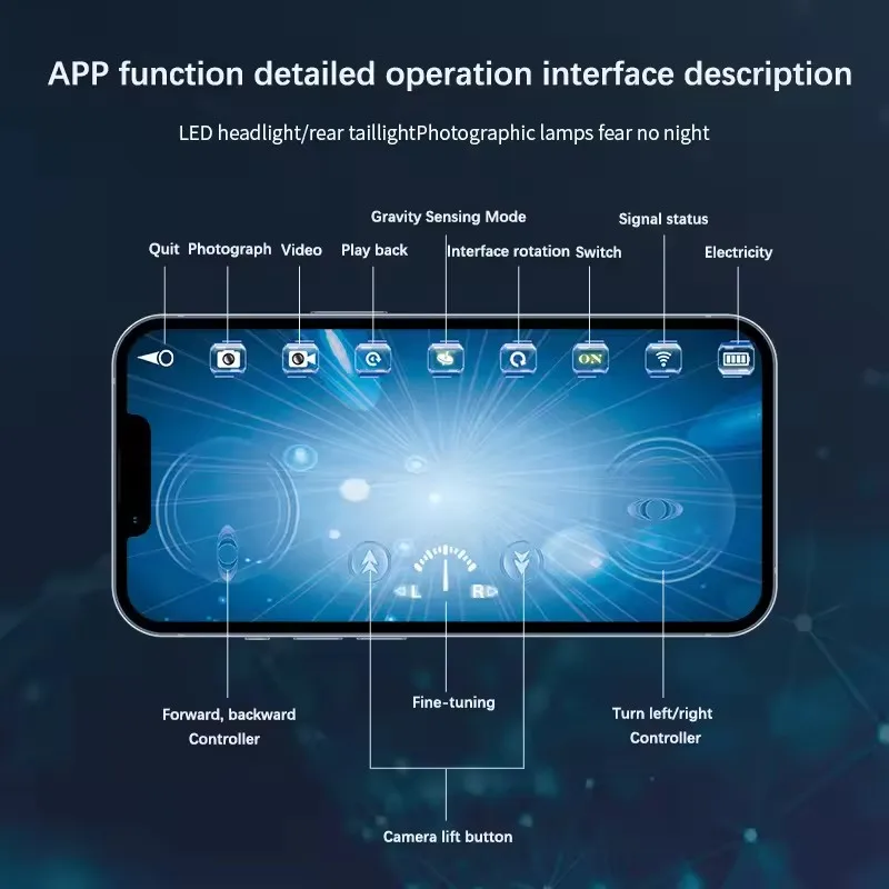 - Operates on a 4-channel WiFi remote control, with a control range of up to 15 meters for easy navigation across water surfaces and below.