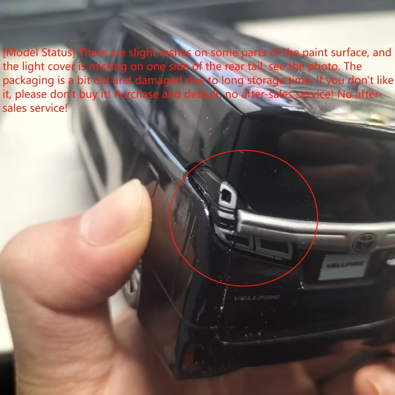 Enhance your collection with this detailed 1:30 scale Vellfire alloy car model, measuring approximately 17.5 x 8.5 x 7 cm. Crafted from alloy, plastic, and rubber, this black static display features four rotatable wheels, precise front grille, angular headlights with clear detailing, and a sleek, curved roofline reflecting the iconic design. While doors are fixed, the model offers a realistic, sturdy look ideal for souvenirs, hobbies, or static decoration. Please note minor paint rash and a missing light cover on the rear tail, with some packaging wear due to age. Sized perfectly for display, it’s a must-have for car enthusiasts and collectors.