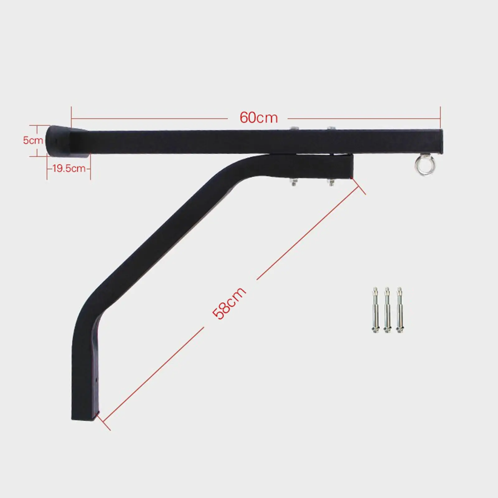 Experience the perfect blend of durability and minimalism with this wall-mounted heavy bag hanger. Crafted from high-strength iron, it offers a sturdy support for your boxing or MMA bags, ensuring safe, stable training sessions. The matte black finish provides an unobtrusive, modern look that seamlessly integrates into any home gym or workout environment. Its sleek design with smooth, curved lines emphasizes functionality while adding style. Measuring approximately 60cm by 58cm with a 5cm thickness, plus a secondary component of 20cm by 15cm, this hanger is engineered to withstand intense workouts without bending or deformation. Whether indoors or outdoors, it delivers reliable performance, making exercise both effective and enjoyable. Trust this hanger to support your fitness goals with stability and style.