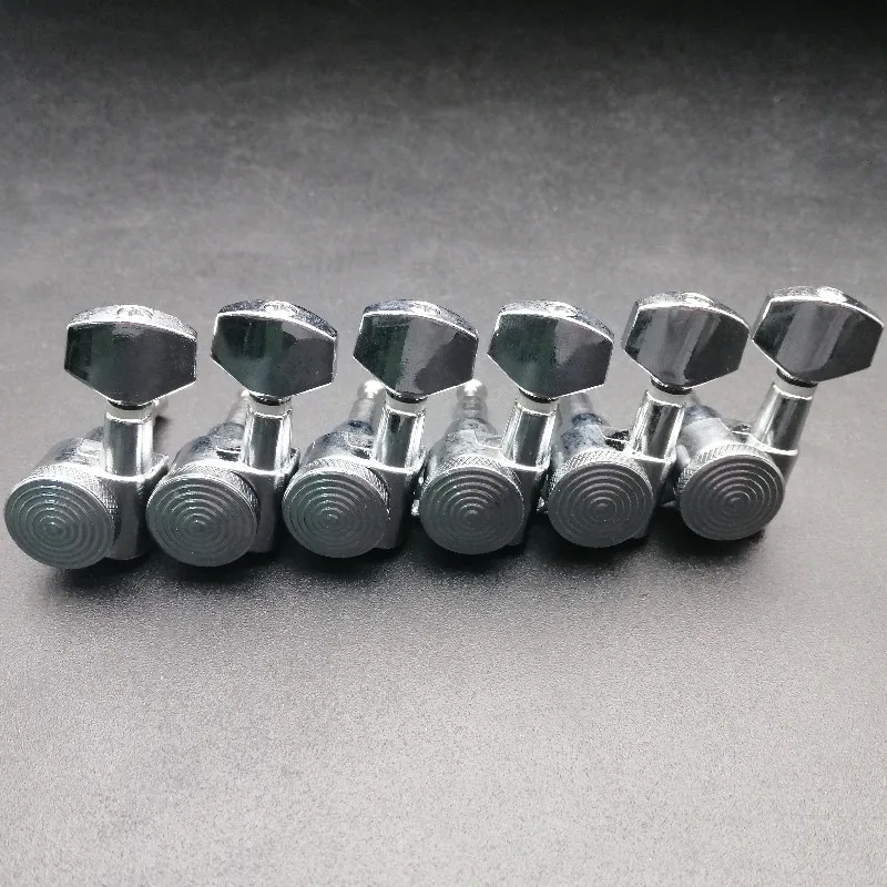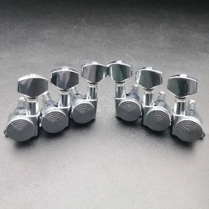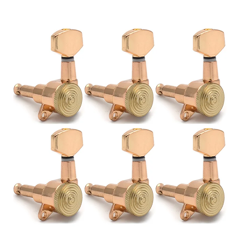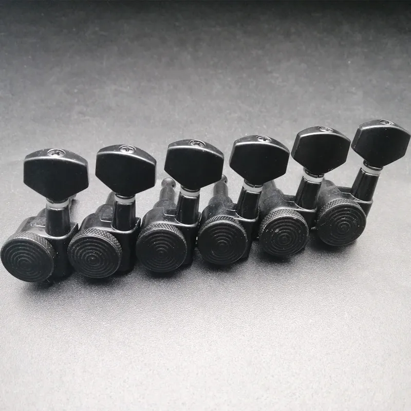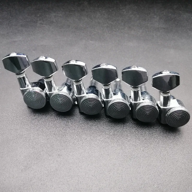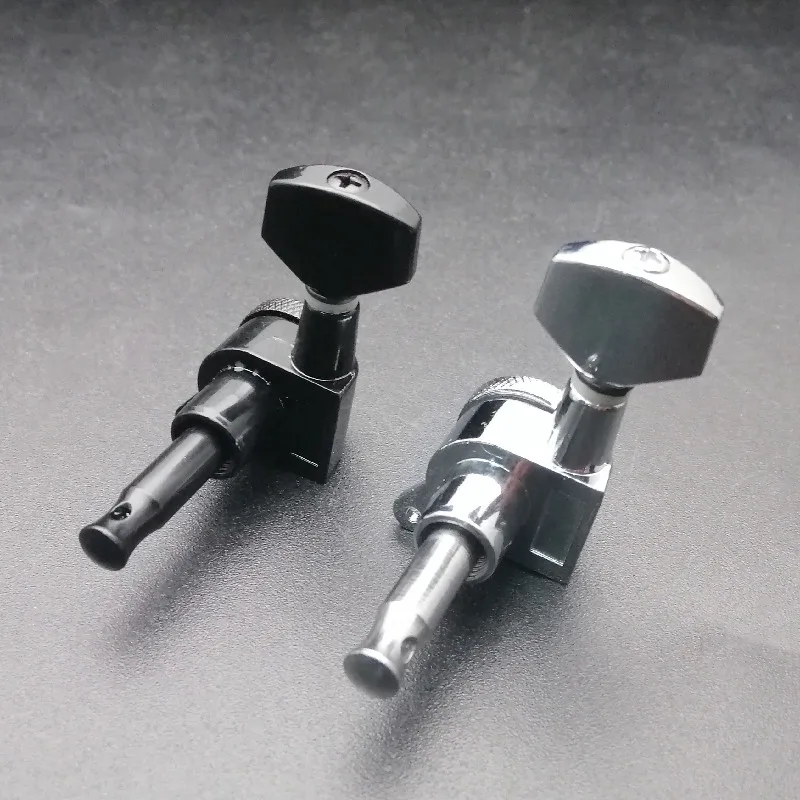 Enhance your guitar’s performance with this set of six high-quality zebra-style locking tuning pegs, compatible with electric and acoustic steel-string guitars. Available in sleek chrome, gold, and black finishes, each tuner features a durable metal construction with a gear ratio of either 1:15 or 1:18, ensuring precise tuning. The auto-locking mechanism securely holds strings in place during playing and adjustments, while mounting hardware—including ferrules, threaded bushings, and screws—is included for easy installation. Designed with a modern, minimalist aesthetic, these tuning pegs are tested for exceptional functionality, providing stability, durability, and professional-grade tuning for your guitar.