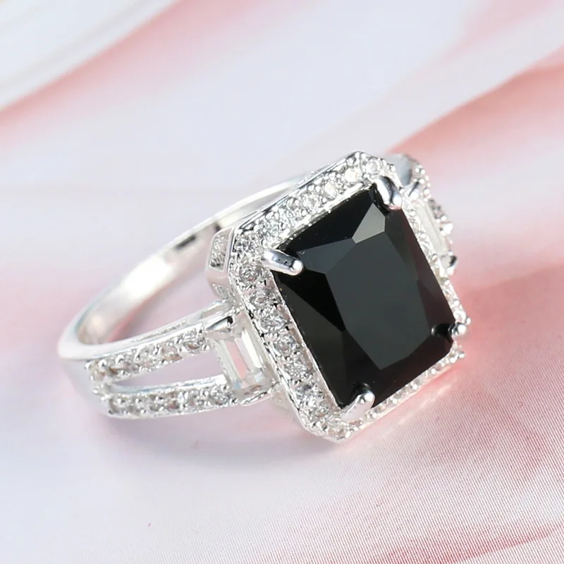 Experience modern elegance with this platinum-crafted black zircon square-shaped gemstone ring, weighing approximately 5 grams. Featuring a stunning lab-created zircon stone set in a prong setting, this cocktail-style ring showcases a sleek geometric design perfect for engagement, wedding, or special occasions. Available in US sizes 6, 7, 8, 9, and 10, it combines durability with luxury through gold-filled technology—a high-quality gold layer bonded to a base metal for long-lasting shine. Its sophisticated style and meticulous craftsmanship make it a striking statement piece, blending contemporary aesthetics with timeless allure for the distinguished wearer.
