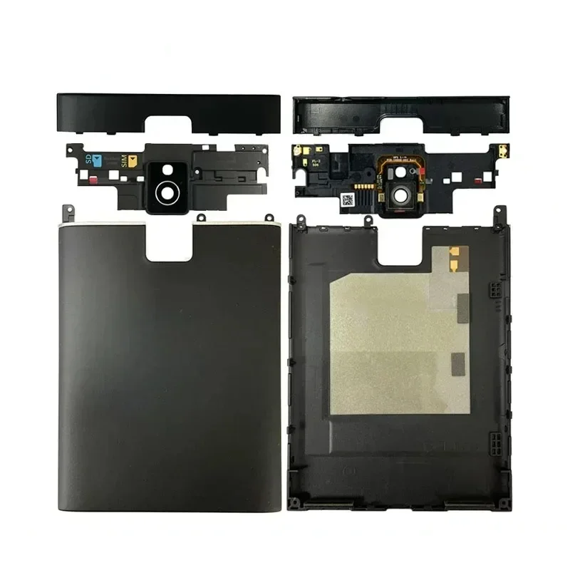The protective rear battery door back cover housing for the BlackBerry Passport Q30 (Model Number: SQW100-1) is designed with a sleek, black finish that offers a professional look. Made from durable plastic, this cover features a smooth matte surface for minimizing fingerprints. Its BAR design incorporates a specific cut-out for the camera lens and precision notches along the top edge to ensure a secure fit for your device. This single-piece battery door cover is an essential accessory, providing both protection and functionality without adding unwanted bulk, making it the perfect addition to your BlackBerry smartphone.