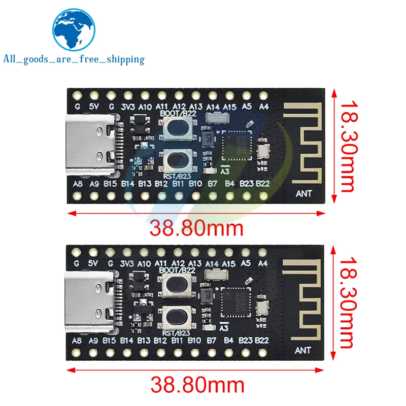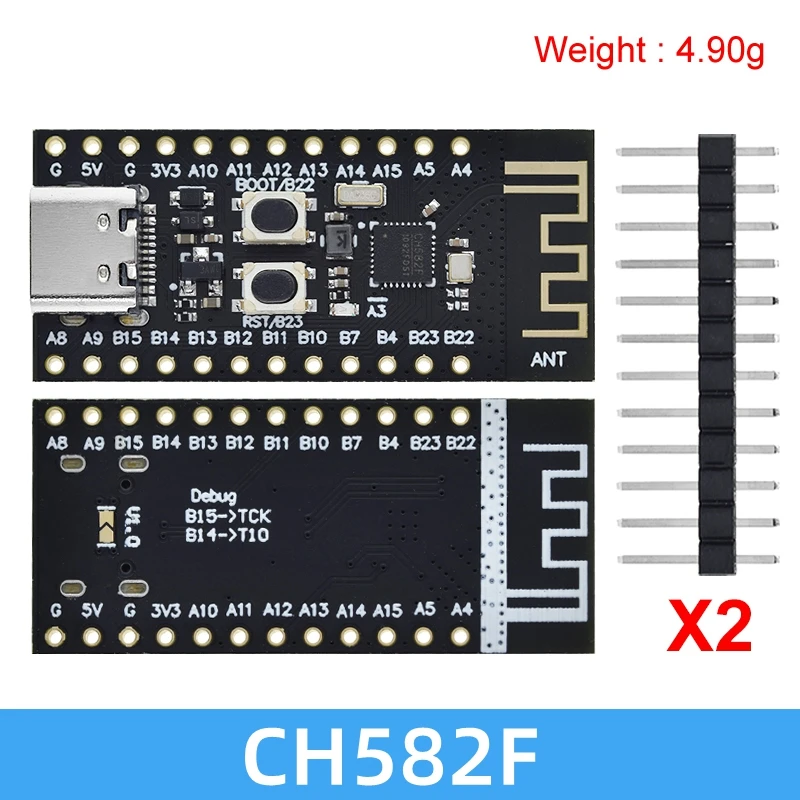 Experience the power of advanced wireless connectivity with this sleek BLE core development board module featuring BLE 5.3 and BLE 4.2 capabilities, based on the BLE Core architecture. Operating at a 60MHz clock speed, it provides 18KB of RAM, 32KB of ROM, and 448KB of Flash memory, making it ideal for sophisticated computer applications. Crafted with an SMD package, this new, customized module in models CH582F and CH573F is available in 1 or 3-piece configurations. Its modern, minimalist design highlights clean lines, gold traces, and shielded areas, offering both style and high-performance functionality for your projects.