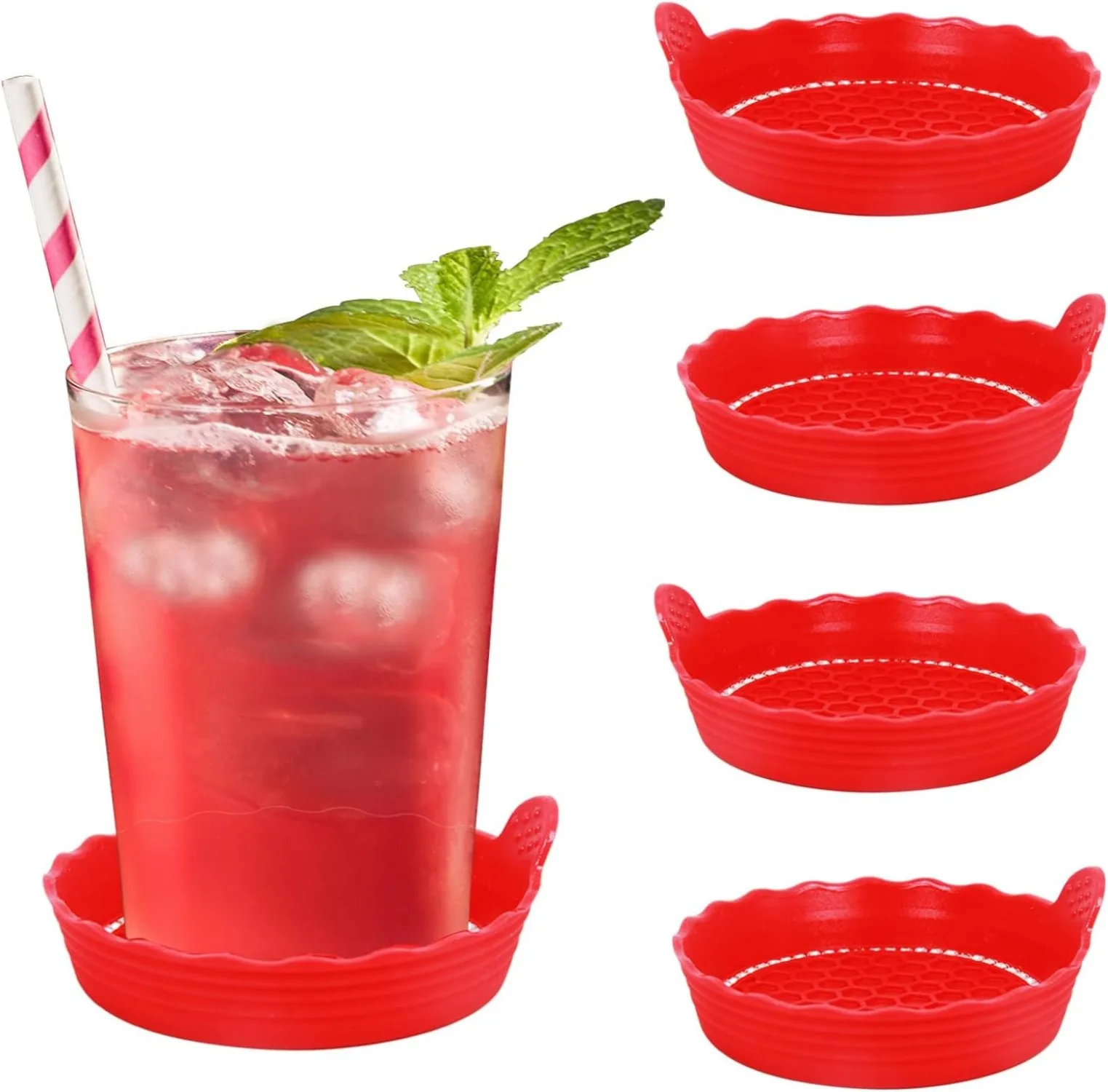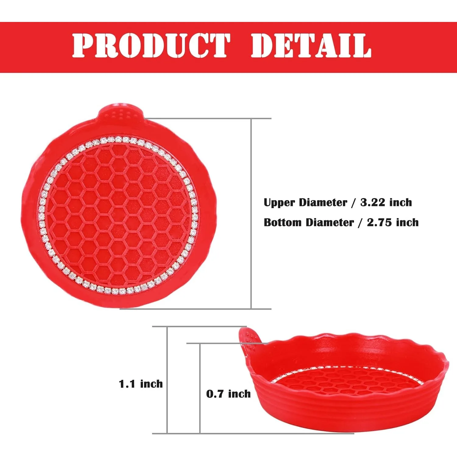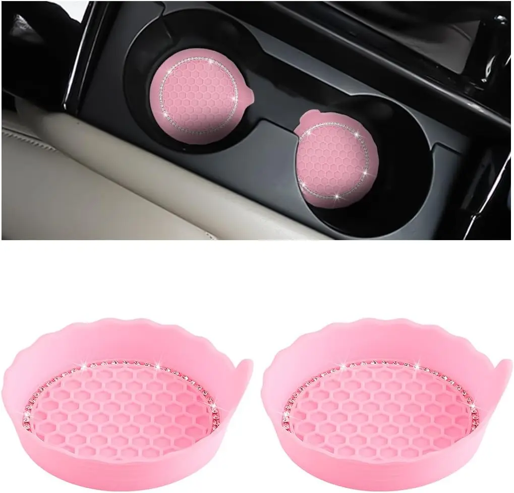 Enhance your driving experience with this set of stylish Bling Car Cup Coasters that effortlessly combine functionality and flair. Made from high-quality, flexible silicone, these coasters feature a striking red hue and a decorative scalloped edge. With a deep cup shape designed to trap spills, they keep your vehicle clean while preventing scratching in cup holders. The textured honeycomb surface guarantees grip, ensuring your drinks remain secure even during bumpy rides. Easy to clean, simply rinse them under water. Picture yourself cruising with these dazzling coasters, transforming your car’s interior into a chic and tidy space.