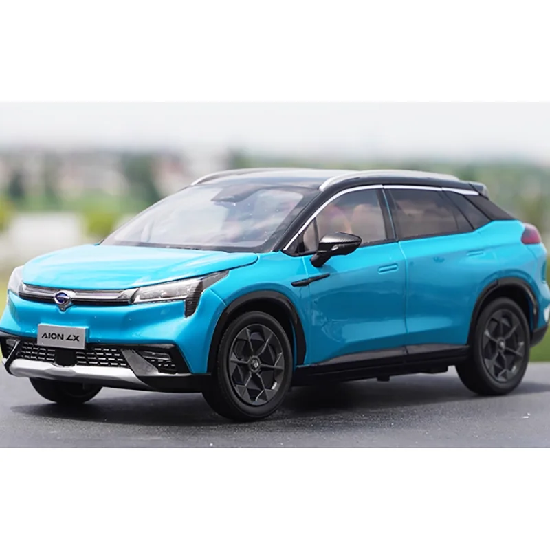 Bring the sleek elegance of the AION LX to your collection with this highly detailed 1:18 scale diecast model. Crafted from alloy, this static display piece captures the modern SUV's aerodynamic lines and vibrant blue finish, making it a standout addition to any collection. The contrasting black panoramic roof adds a touch of sophistication, while the transparent windows reveal a realistic interior with brown seats and meticulous detailing. The front grille, sleek headlights, side mirrors, and pronounced wheel arches with dark alloy wheels are all faithfully reproduced. Measuring approximately 29 cm long, 11 cm wide and high, this model emphasizes craftsmanship and realism, offering enthusiasts a true-to-life miniature of the original vehicle for display or gifting.