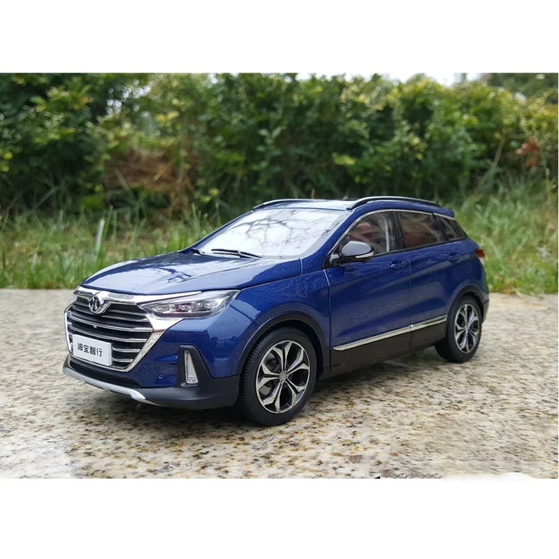 Experience the detailed craftsmanship of this 1:18 scale diecast alloy model, measuring approximately 24 cm long, 11 cm wide, and 8 cm high. Featuring a sleek, metallic blue finish with a glossy surface, it boasts realistic multi-spoke alloy rims, textured black rubber tires, chrome accents on the grille, and transparent windows that reveal a subtly detailed interior with black and brown accents. Crafted from alloy, plastic, and rubber, this finished display piece is perfect for collectors and enthusiasts seeking a modern, visually striking ornament that captures the essence of a contemporary SUV. Durable and meticulously designed, it makes an elegant addition to any collection or display.