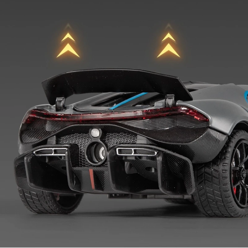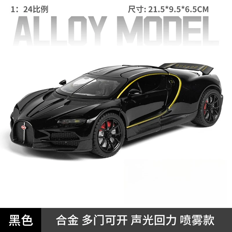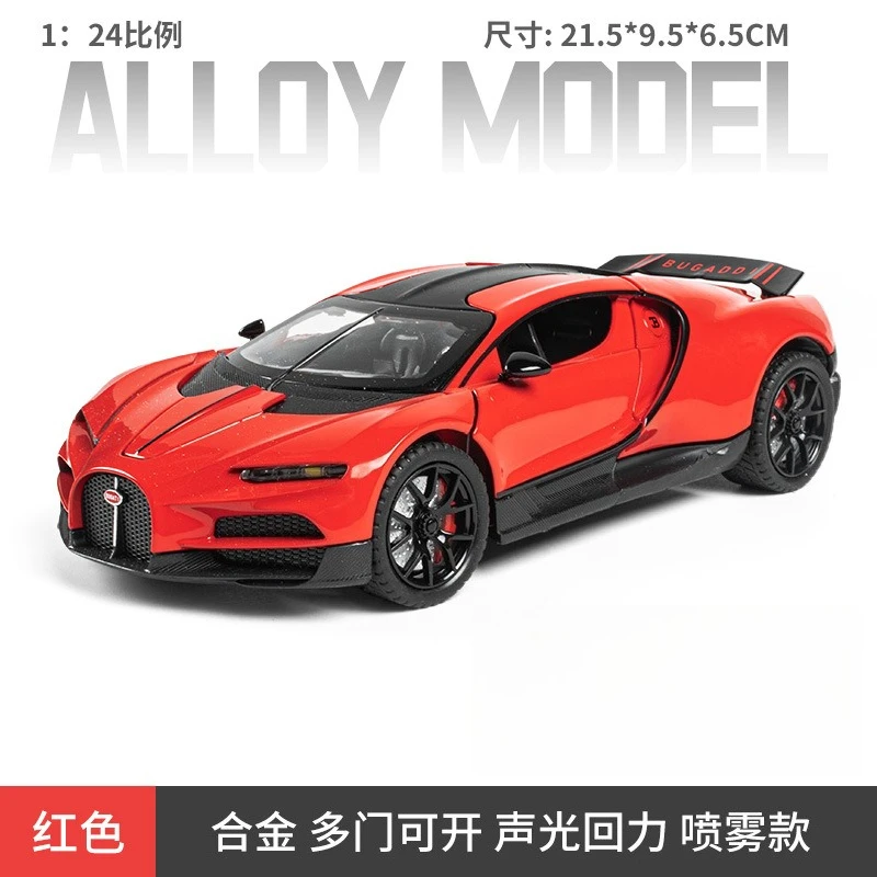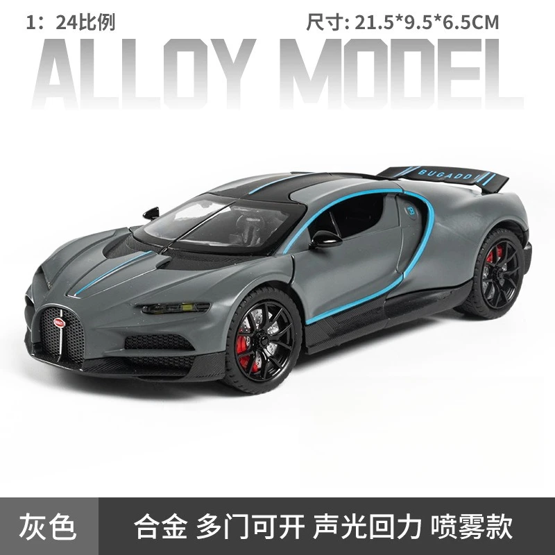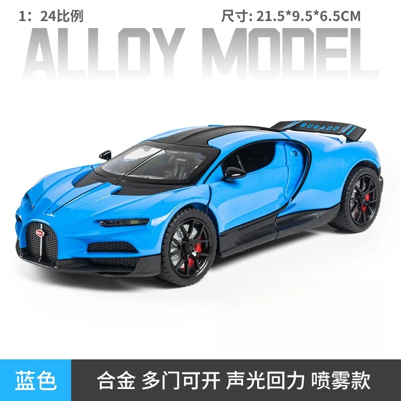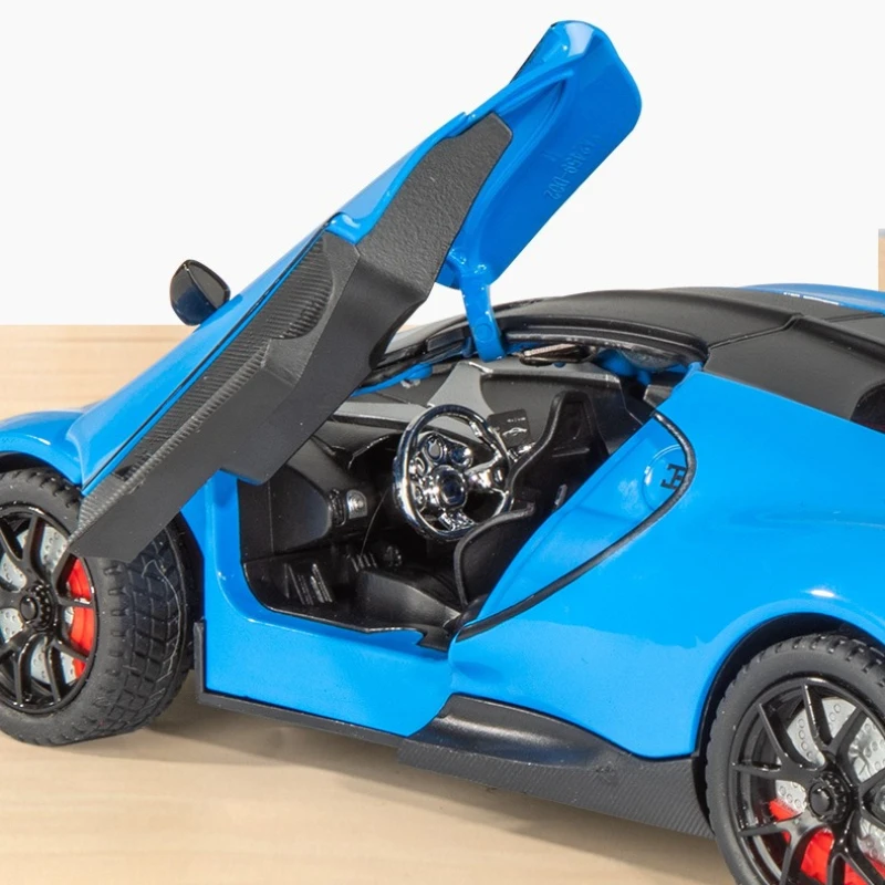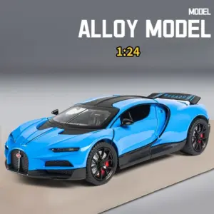 Experience the thrill of owning a highly detailed 1:24 scale diecast model of a supercar crafted from durable metal. This alloy toy features an aerodynamic, sleek body finished in vibrant blue, with intricate design elements including a distinctive oval grille, alloy wheels with spoke patterns, red brake calipers, and a sporty rear spoiler with the “BUGATTI” logo. The model includes transparent windows revealing a detailed interior, subtle door handles, and air vents near the rear wheels, all designed to evoke a sense of speed and luxury. Perfect for adult collectors, it is available with or without its original box and is suitable for ages 14 and up.