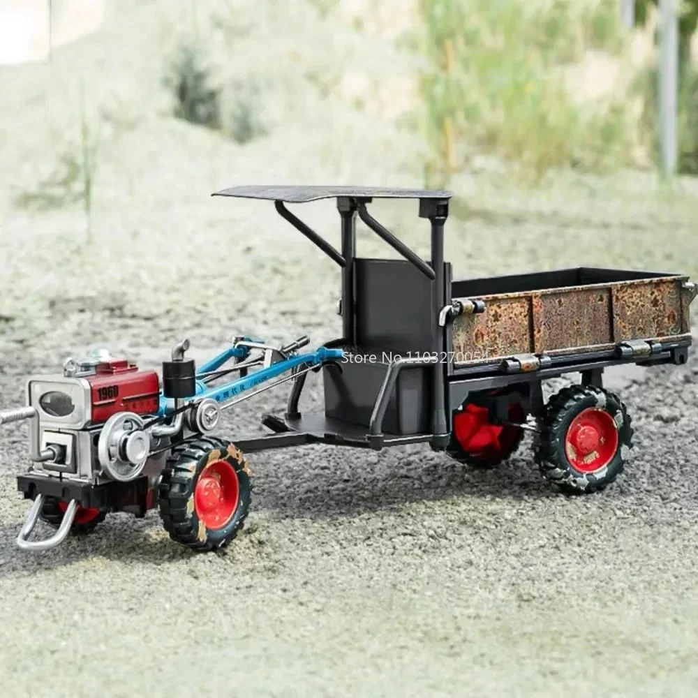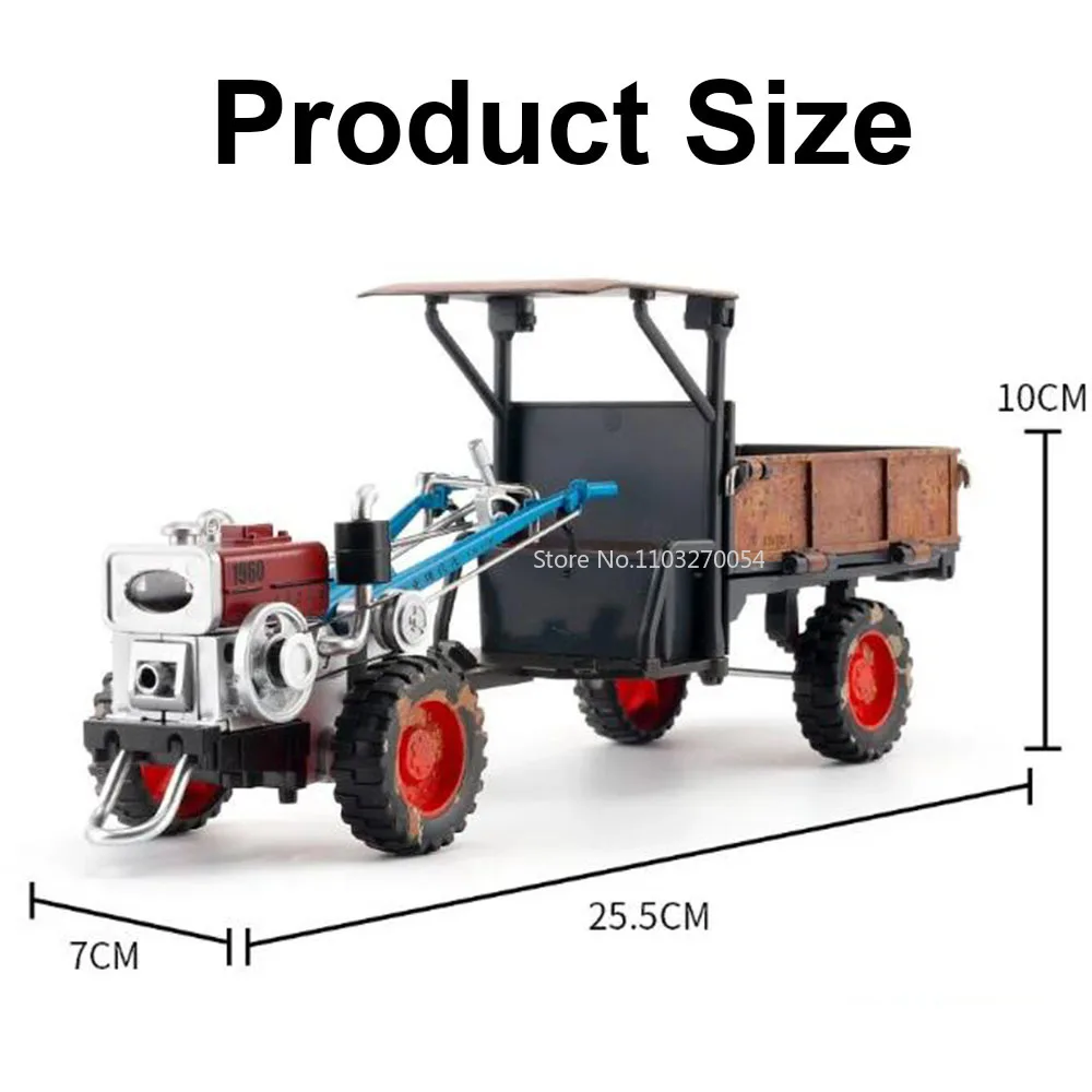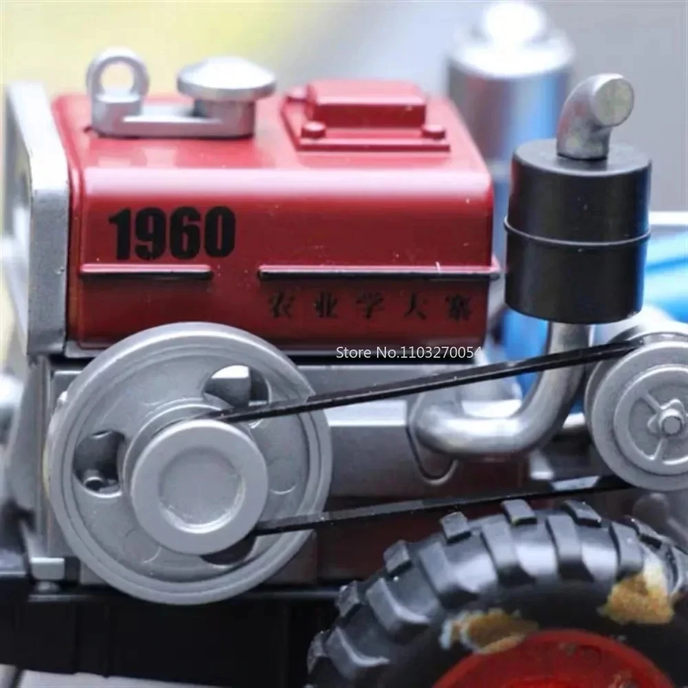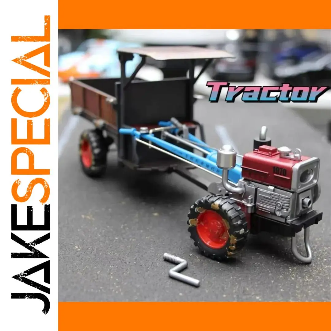 - Designed as a retro walking tractor with vintage styling elements, detailed operator seat, and a sturdy towing hook for utility simulation.