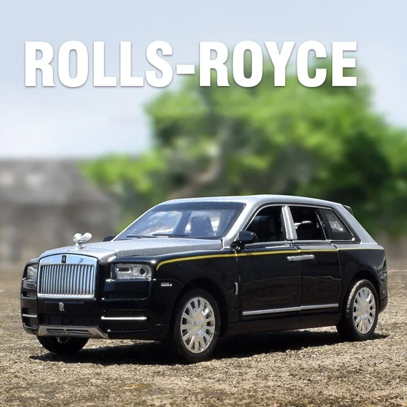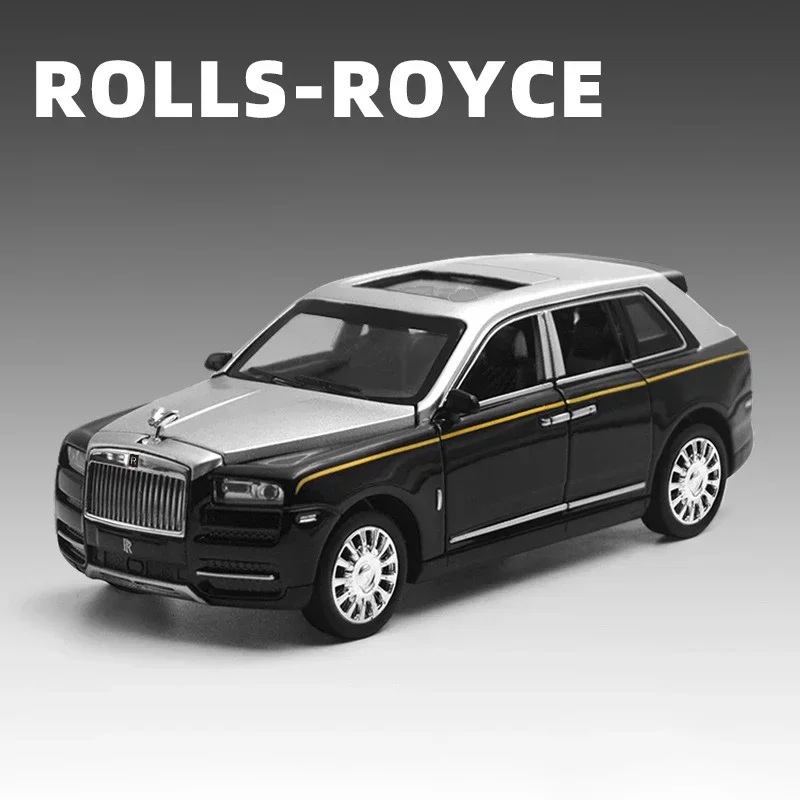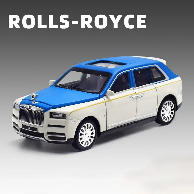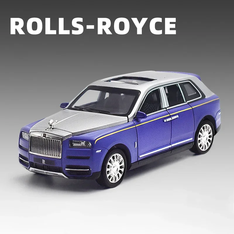 Experience the elegance of the Rolls Royce Cullinan SUV with this meticulously crafted 1:32 scale die-cast model, made from alloy and plastic. Featuring realistic exterior details, a glossy blue finish, and intricate accents like a prominent front grille, multi-spoke rims, and chrome highlights, this model exudes luxury. It includes sound and light functions for added realism, offering a captivating display piece. Suitable for collectors aged 14 and above, this non-electric model requires no batteries and is available in black, purple, and blue. Perfect for showcasing sophistication and craftsmanship in your collection or as a striking gift for automotive enthusiasts.