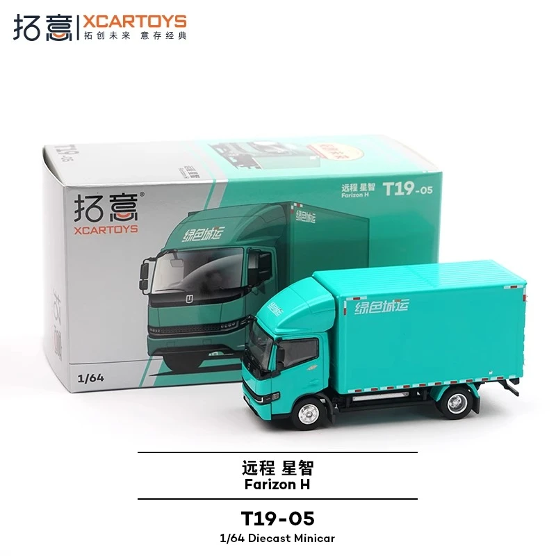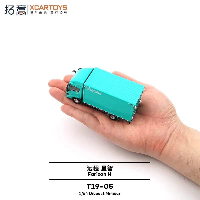 Imagine adding this eye-catching, detailed miniature of a box-type truck to your collection—an ideal piece that combines realism and vibrant style. Crafted from durable metal with a glossy finish, this 1:64 scale model captures the sleek, modern design of a transport vehicle. Its bright T19-05 light blue color makes it stand out, complemented by white Chinese characters, a green and white logo, and reflective red and white stripes along the cargo box edges. The realistic wheels with silver hubcaps, black tires, and detailed chassis contribute to its authentic appearance. Perfect for adult collectors and toy enthusiasts, this model brings a playful yet sophisticated touch to your display. Visualize it complementing any collection with its vibrant colors and meticulous craftsmanship.