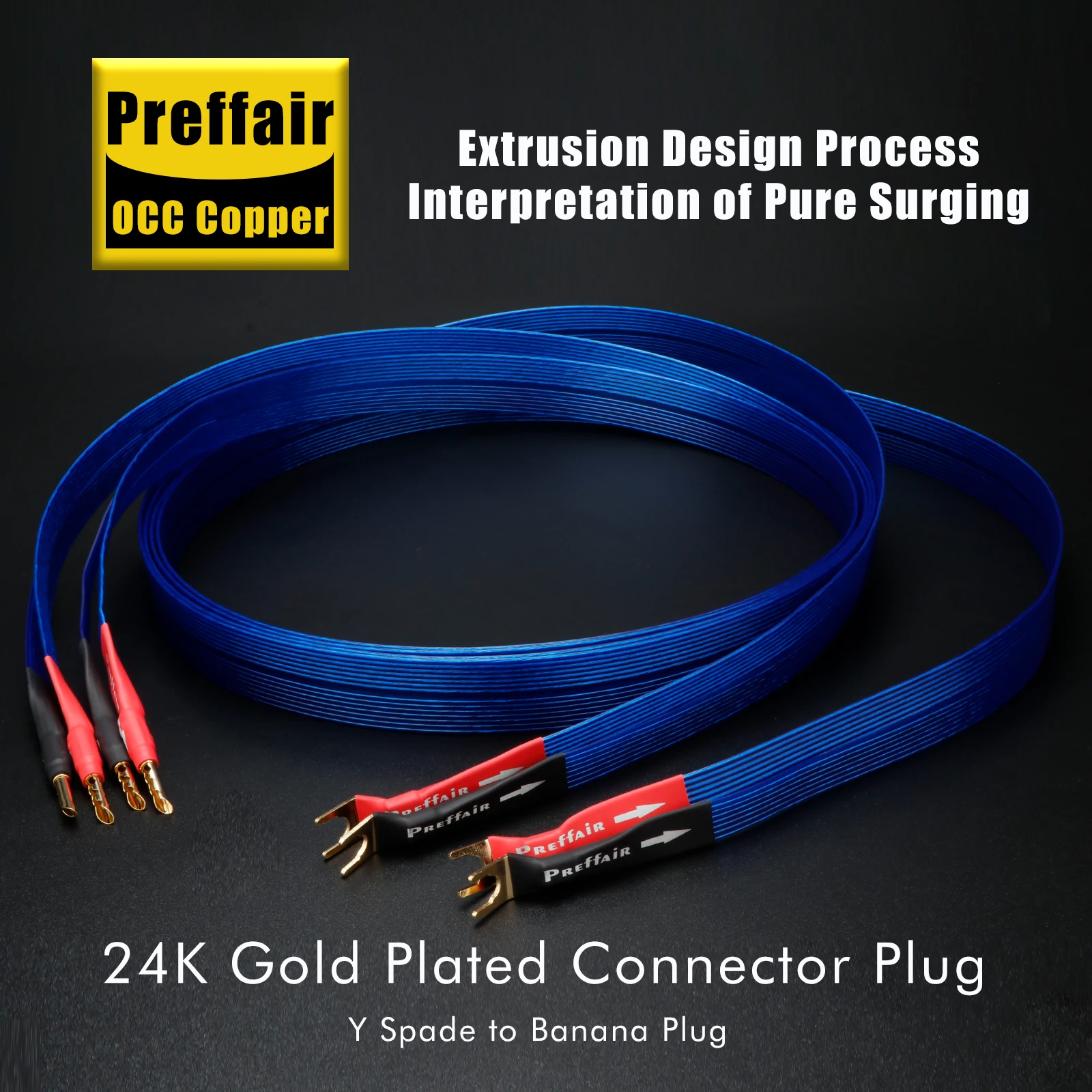 Experience superior audio performance with this high-quality blue speaker cable, featuring 20 x 26 AWG silver-plated copper conductors housed within durable FEP insulation. Its combination shielding minimizes interference, ensuring pristine, clear sound transmission. The cable’s sleek, glossy blue exterior and precise construction deliver exceptional speed, transparency, and rhythmic accuracy. Terminations include gold-plated spade or banana plugs, available in Banana to Banana, Spade to Banana, and Spade to Spade configurations, with lengths ranging from 0.5m to 3m. Built to meet CE and RoHS standards, this audiophile-grade cable is designed for those who demand clarity, durability, and high-fidelity sound quality in their audio system.