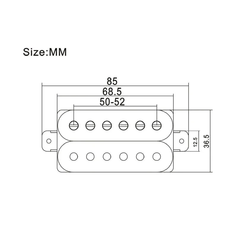 - Features dual-coil construction with six pole-pieces arranged in two rows, with one fixed slug and one adjustable screw per pickup, allowing precise tone shaping.