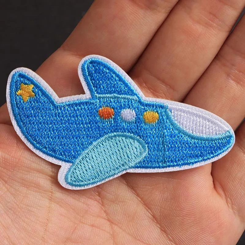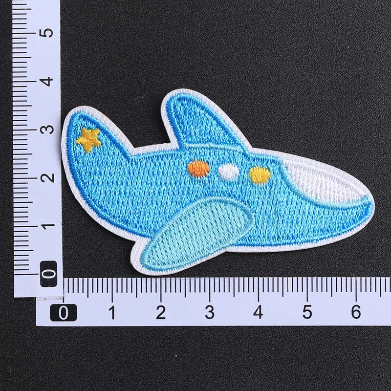 These delightful cartoon airplane patches showcase a whimsical design that perfectly blends color and creativity for your fabric needs. Each patch measures 6.4 cm in width and 3.8 cm in height, making them the ideal size for personalizing a variety of items such as t-shirts, bags, and curtains. Made from high-quality polyester, these eco-friendly patches are not only stylish but also durable. The charming airplane design features bright blue tones, a playful yellow star detail, and colorful dots that add flair to any fabric surface. The 3D embroidered finish enhances their appeal, making them a must-have for your crafting projects!