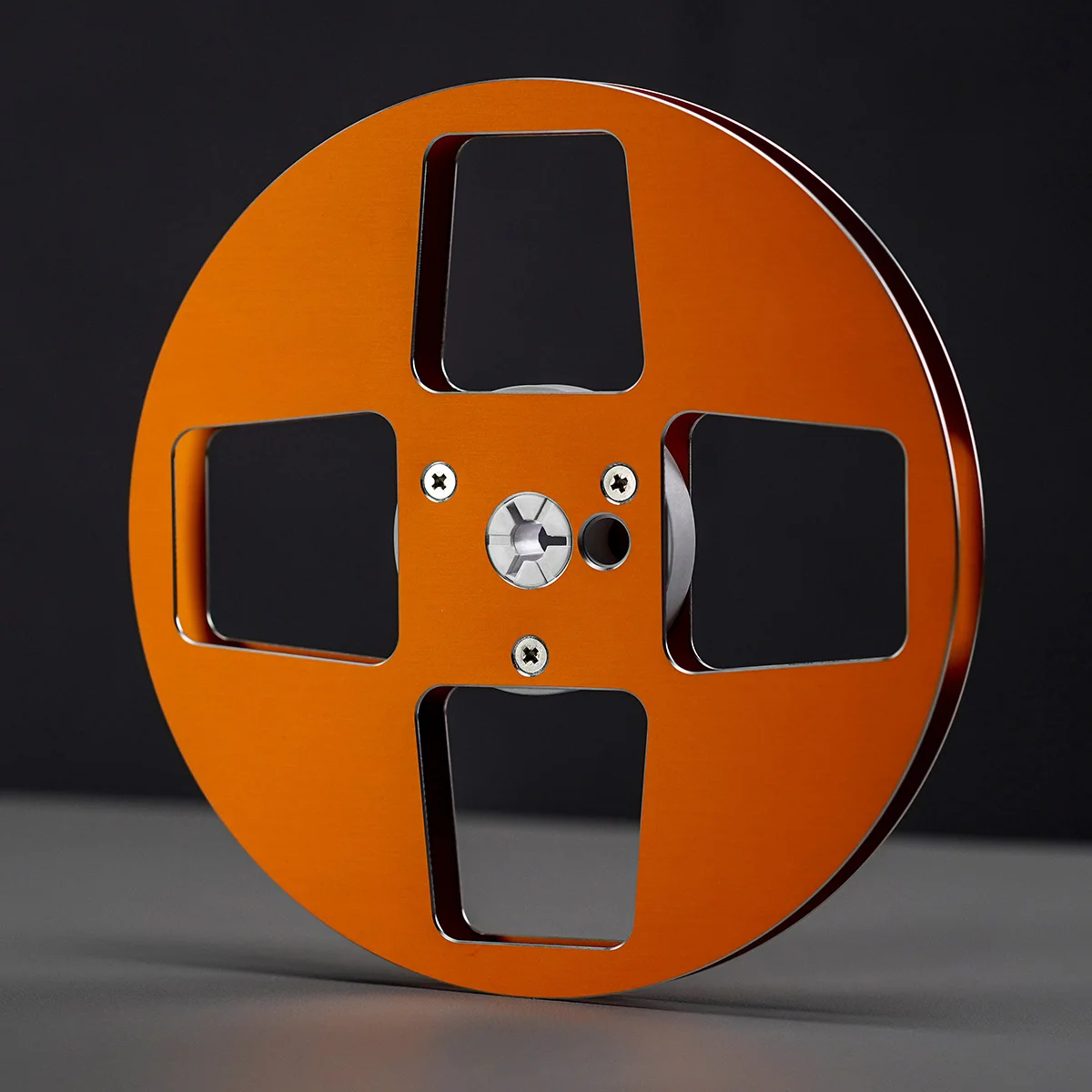 Elevate your recording experience with this 7-inch aluminum alloy empty tape reel, designed for 1/4-inch open reel tapes and compatible with reel-to-reel recorders from TEAC, AKAI, Pioneer, Studer, and ReVox. Crafted for durability and lightweight performance, it features multiple wind resistance holes, a smooth circular hub, and a slightly raised lip to secure tape securely. Its sleek blue finish adds a modern touch, making it an ideal replacement or repair part for professional audio equipment. Available in multiple vibrant colors—black, orange, purple, red, and silver—this universal reel ensures a perfect fit, enhanced sound quality, and reliable operation during recording, erasing, and rewinding.