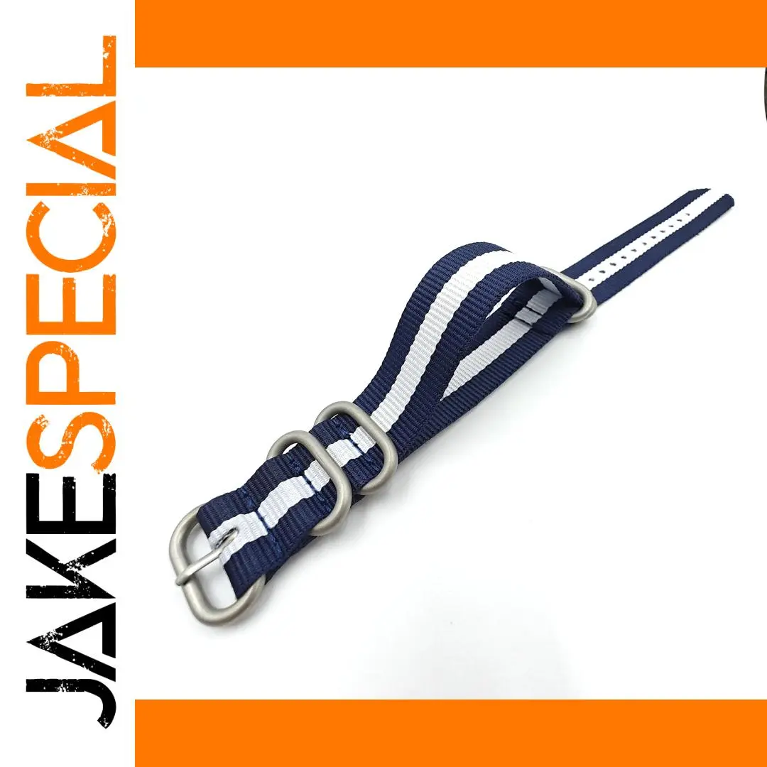 This nylon woven canvas watchband strap is designed for versatility, fitting a range of watch brands including SEIKO, IWC, Citizen, and Rolex. Featuring a striking navy blue base adorned with prominent white stripes, it makes a sporty yet sophisticated statement. The strap measures approximately 26.5 cm in length and is available in widths of 18mm, 20mm, 22mm, and 24mm, ensuring a perfect fit for your favorite timepiece. The durable fine steel pin buckle and stainless steel loops not only enhance the design but also provide practical functionality. Whether you're dressing up for an event or heading out for casual outings, this watchband combines aesthetic appeal with everyday wearability.