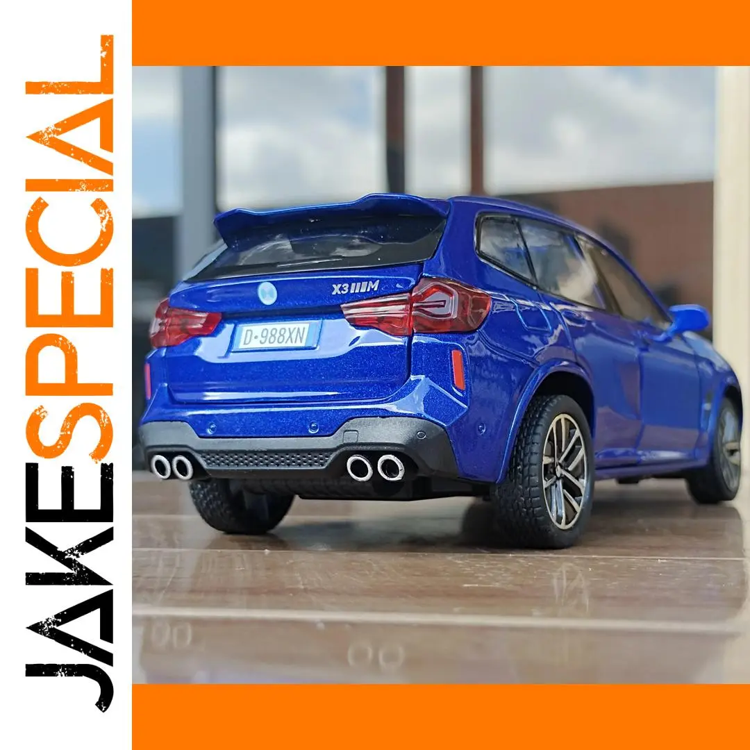 Experience the thrill of owning a meticulously crafted miniature with this vibrant blue diecast model of the BMW X3 M SUV. Measuring a precise 1:32 scale, this replica captures every detail—from the sleek, aerodynamic contours to the sporty sculpted body. Its glossy finish reflects light beautifully, highlighting sharp lines and sophisticated design elements like the intricately detailed alloy wheels, realistic tread tires, and tinted windows framed with black trim. The modern rear features transparent and red taillights, a subtle roof spoiler, and exhaust outlets integrated into a textured black diffuser. Perfect for display, this model combines elegance and sporty appeal, making it a must-have addition for collectors or enthusiasts looking for a lifelike miniature with full technical authenticity.