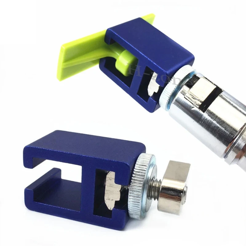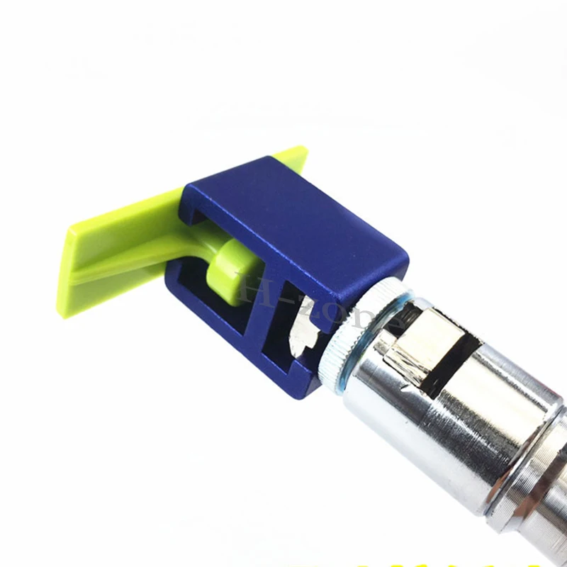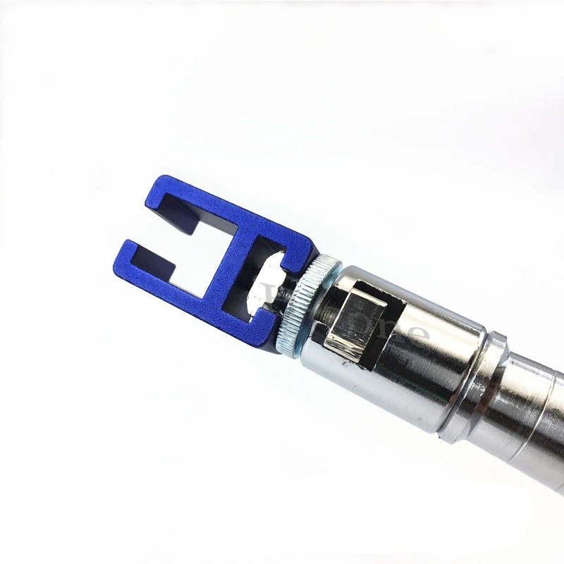 Imagine tackling any vehicle dent with confidence using this highly functional blue car dent repair tool. Its sleek, bright blue rectangular frame with a glossy finish reflects professionalism and durability. The open-ended ring design is precise, measuring approximately 8mm in width and 39mm in length, with an internal width of 16mm, making it ideal for sheet metal repairs. The two hook-like prongs at the top are slightly bent outward, providing secure attachment for pulling or pressing dents. The metallic, ridged bottom component is designed for easy grip and adjustment. This compact tool is suitable for use in paintless dent removal and sheet metal repair, offering both strength and ease of use for automotive enthusiasts and professionals alike.